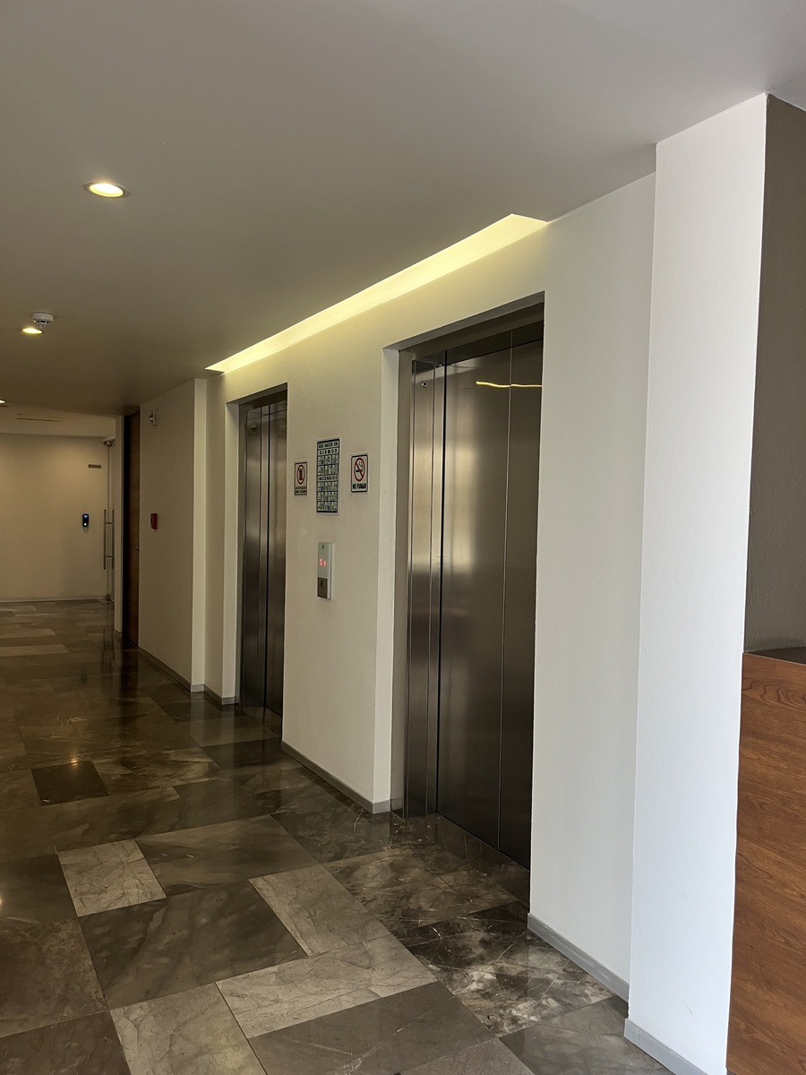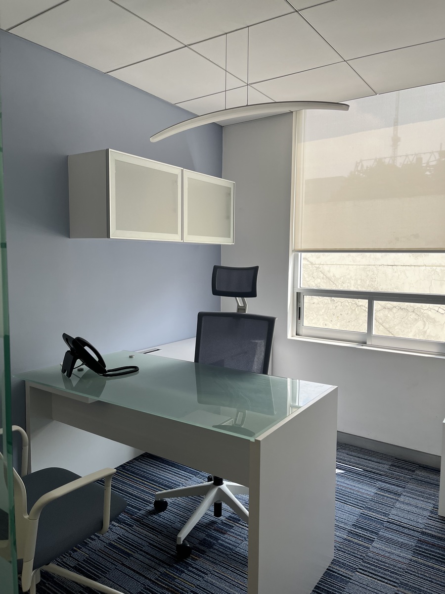 Consta de 4 oficinas equipadas con luz ventilación natural, una sala de juntas para 10 o 12 personas, una oficina privada para gerente y una oficina Dirección general, baño completo con dos accesos, área grande equipada para 10 estaciones de trabajo con teléfonos cada una y dos copiadoras. Cuenta con área de recepción y sala, cocina integral y totalmente equipada, 4 lugares de estacionamiento privados y cuenta con servicio de valet parking, el acceso al edificio cuenta con recepción y control de seguridad, elevador y vigilancia las 24 hrs.