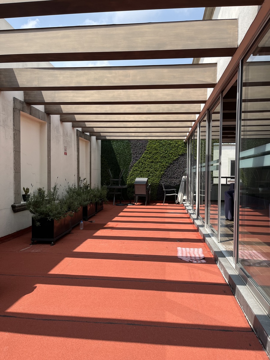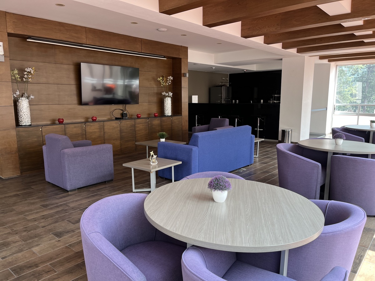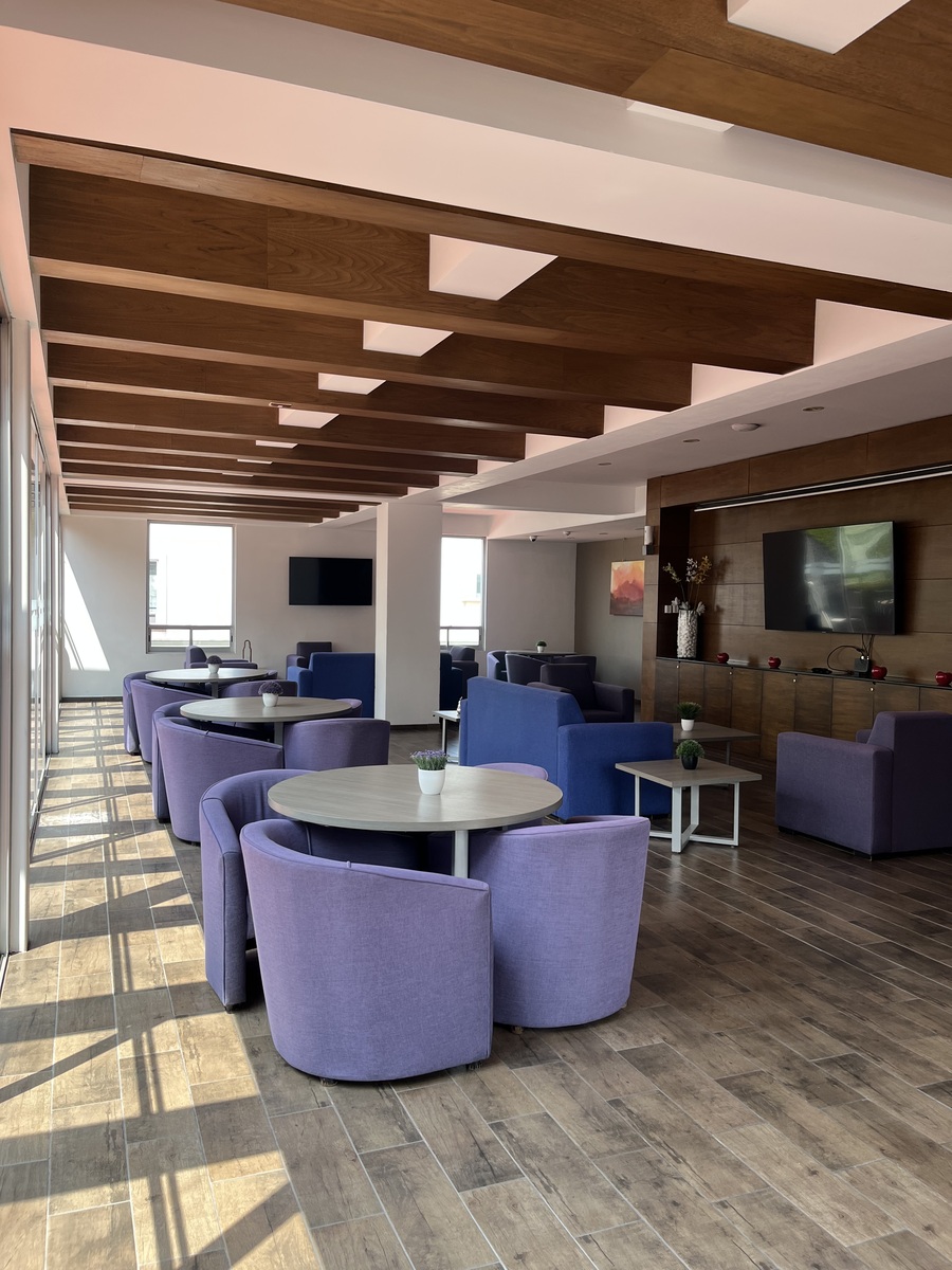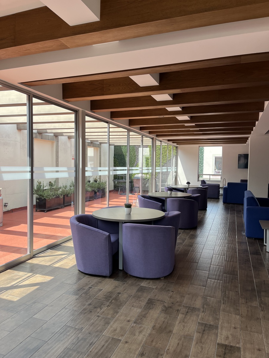 En el Top Roof se encuentra el área común con 6 salas de juntas VIP equipadas, sala lounge amueblada con pantalla, barra cocina integral y baños, esta área cuenta con una agradable terraza exterior.