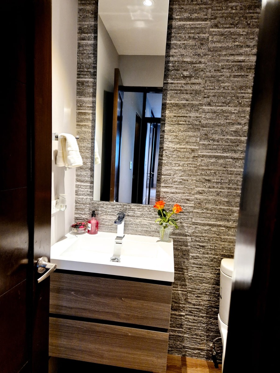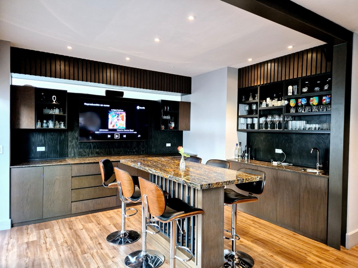 • Área de bar con tarja, barra comedor y preparación para máquina de hielos