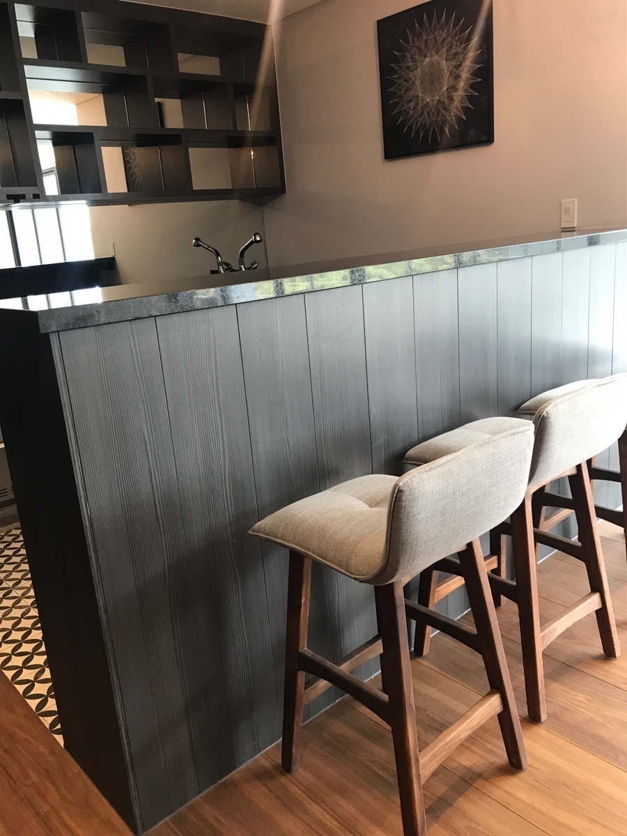 - Cozinha fechada com bancadas de granito e áreas espaçosas para cozinhar