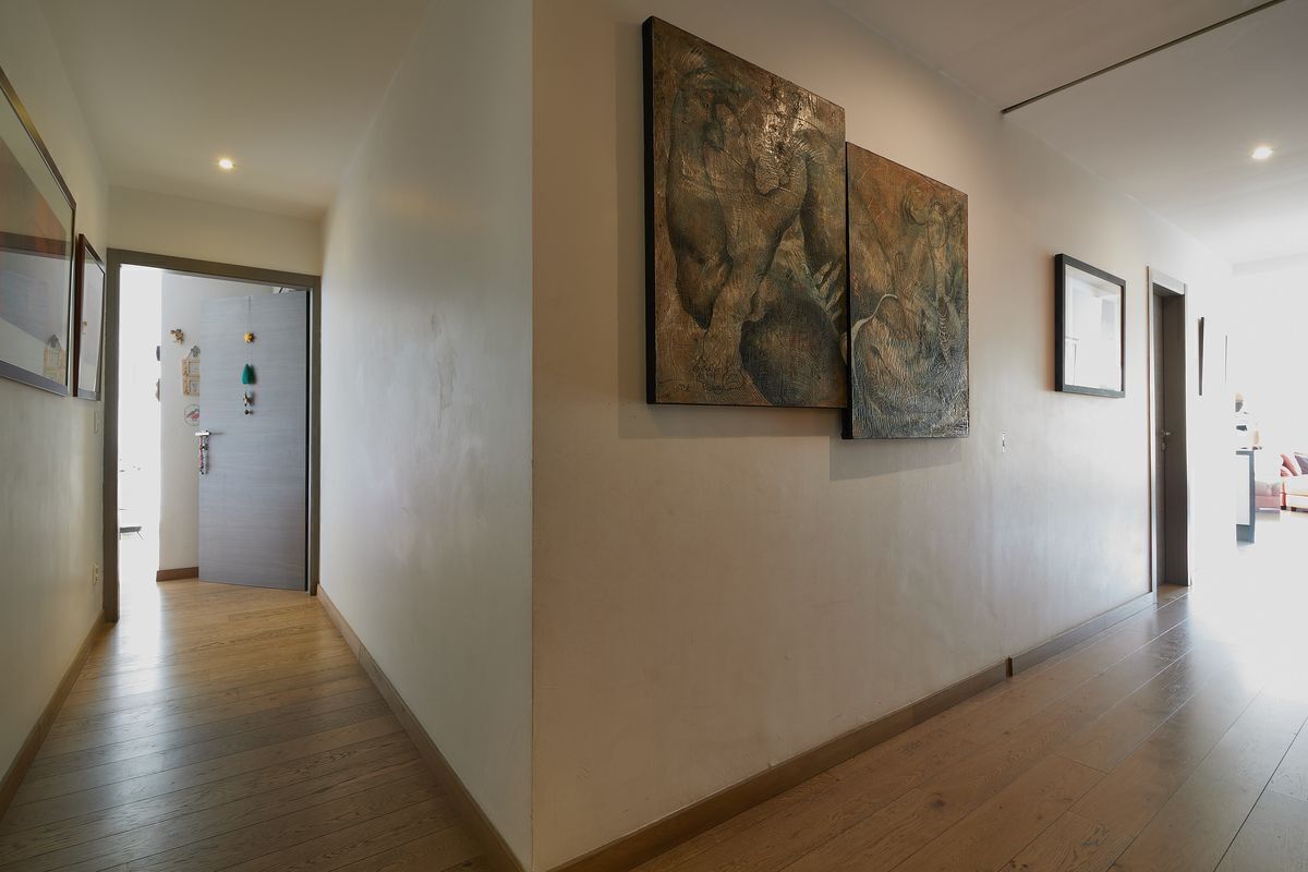 Tem 310 m2 de superfície privativa + 80 m2 de terraço privativo. Dois níveis, vista frontal e traseira.