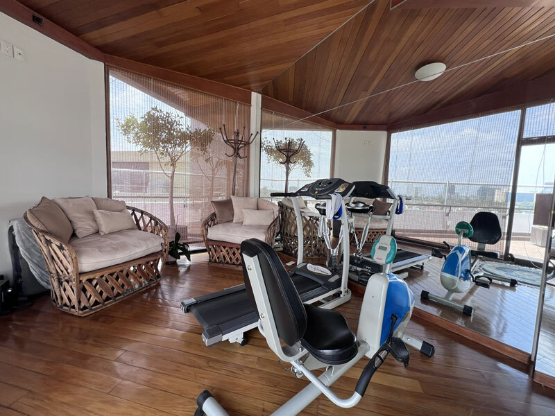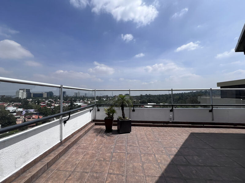 Pent House desarrollado en 3 niveles, distribuido de la siguiente manera: 1er. Nivel: vestíbulo, sala comedor a doble altura, ½ baño de visitas, cocina integral con desayunador, cuarto de servicio y cuarto de lavado, 2 recámaras cada una con vestidor y baño. 2º Nivel: estudio o sala de T.V., recámara principal con baño y vestidor. 3er. Nivel: bar, gimnasio, asador y área abierta.