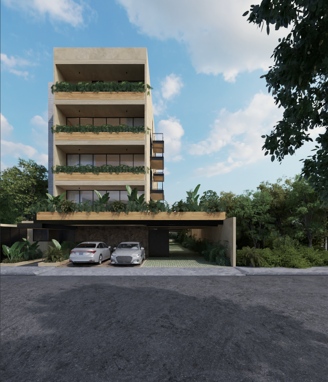 O "Conjunto de Apartamentos KA’AX" é um desenvolvimento residencial que consiste em um total de 9 apartamentos distribuídos em quatro níveis, localizado na área privilegiada de Temozón Norte.