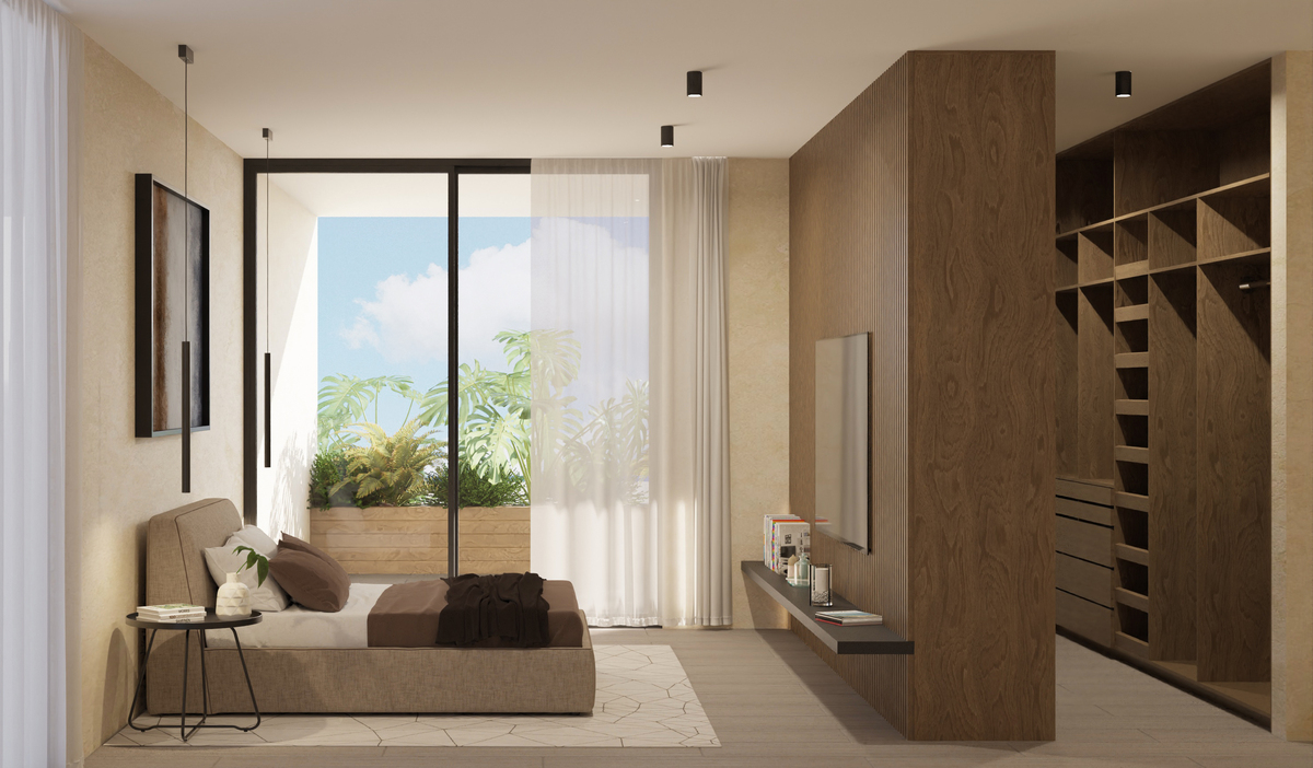 * Este é um render que pode variar em relação ao resultado real.*El "Conjunto departamental KA’AX" es un desarrollo residencial que consta de un total de 9 departamentos distribuidos en cuatro niveles, ubicado en la zona privilegiada de Temozón Norte.