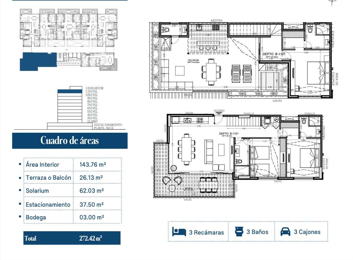 3 cajones de estacionamiento