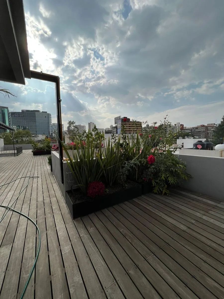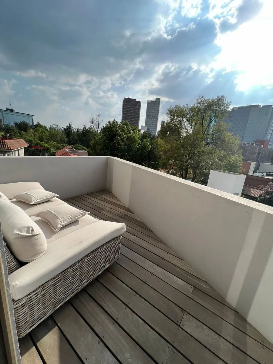 "Localizado em uma rua tranquila, na esquina com Masaryk, este exclusivo penthouse oferece luxo e conforto. Possui uma ampla sala de estar e jantar com acesso a um terraço, cozinha aberta e excelente iluminação natural.
