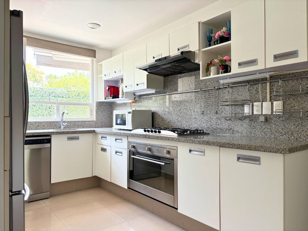 Cuenta con una distribución ideal para familias. En la planta alta encontramos la sala-comedor con aire acondicionado y una cómoda terraza de 26 m2 con estores eléctricos. Además de una cocina cerrada con cuarto de servicio completo y área de lavado.