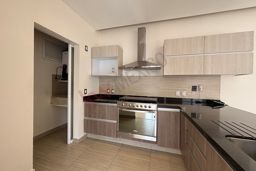 Cocina equipada, abierta y a un lado tiene el área de lavado.