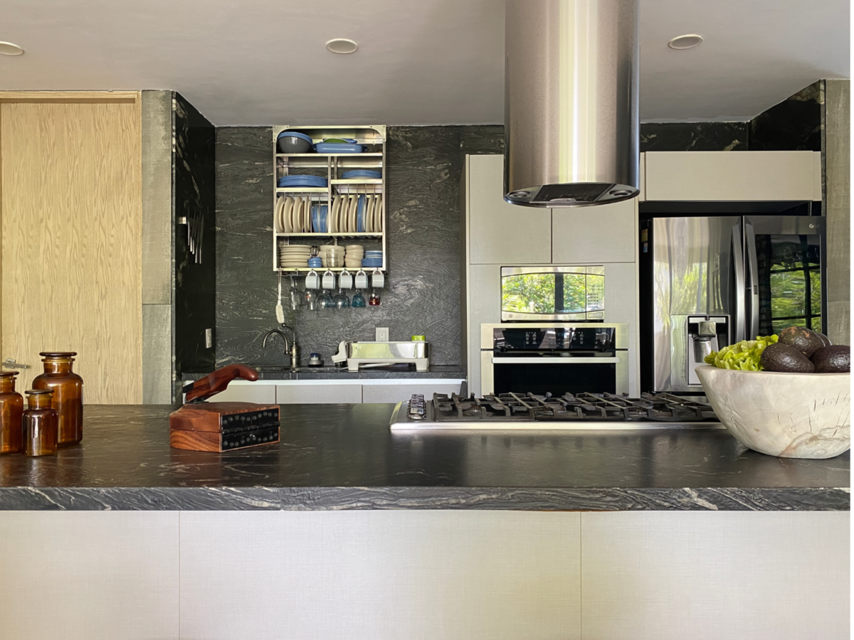 La cocina es abierta y está completamente equipada con los mejores electrodomésticos. Frigorífico General Electric, Enfriador de vinos, cafetera empotrada, estufa VIKING de 6 fuegos, horno y microondas. El sueño de cualquier amante de la alta gastronomía.