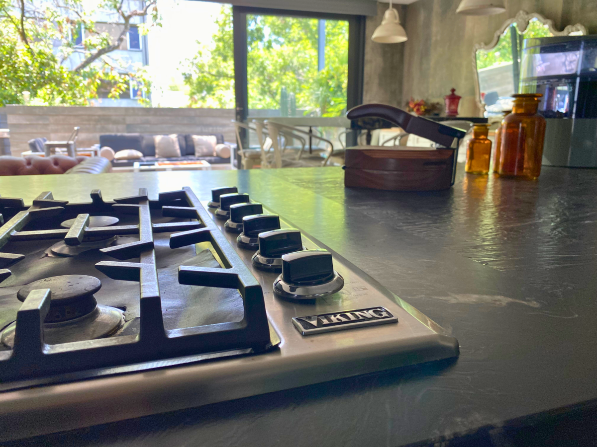 La cocina es abierta y está completamente equipada con los mejores electrodomésticos. Frigorífico General Electric, Enfriador de vinos, cafetera empotrada, estufa VIKING de 6 fuegos, horno y microondas. El sueño de cualquier amante de la alta gastronomía.