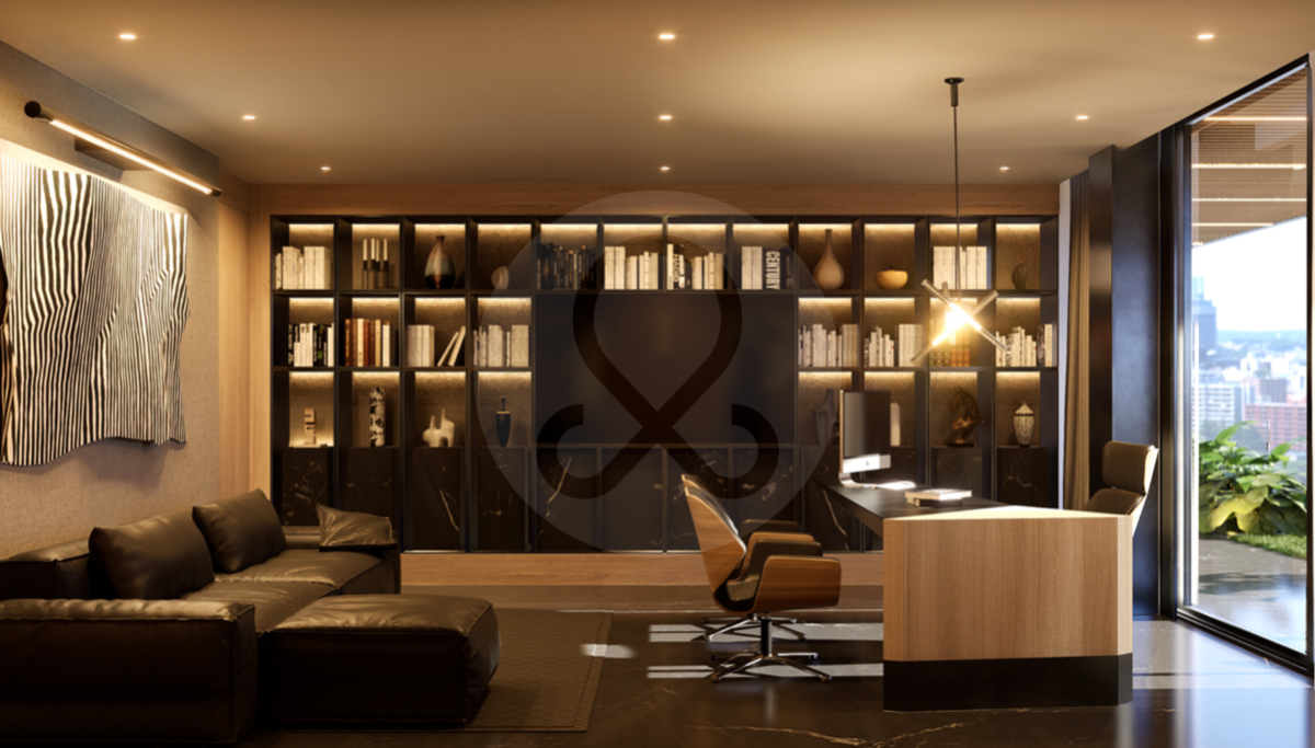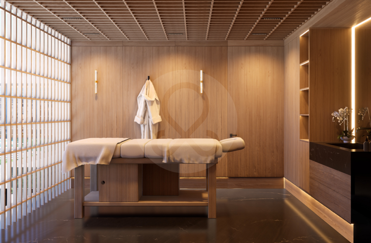 - Amenidades privadas: bar, academia, sala de família, sala de jogos, escritório e spa.