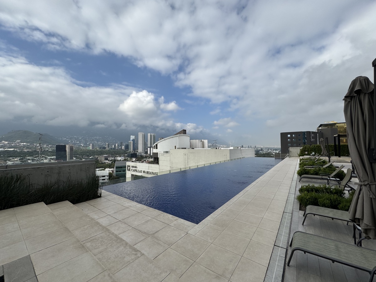 Vive por encima de la ciudad en este pentehouse con vistas panoramicas impresionantes hacia la Sierra Madre y la ciudad. Espacios amplios y luminosos, sala comedor con terraza, recamara principal con terraza privada, baño y espacioso walk in closet, ademas de dos amplias recamaras secundarias con su baño y vestidor. Cocina equipada de diseño elegante y funcional. Clima seccionado por areas, cuenta con una bodega y cuatro cajones de estacionamiento. el edificio ofrece exclentes amenidades incluyendo gimnasio totalmente equipado, salon de eventos, salas para juntas o reuniones, y alberca con vista panorámica. Ubicado en Valle Oriente, una de las zonas mas exclusivas y mejor conectadas en San Pedro Garza Garcia, y a escasos minutos de las mejores y mas exclusivas zonas comerciales y de centros de neocios de la ciudad.