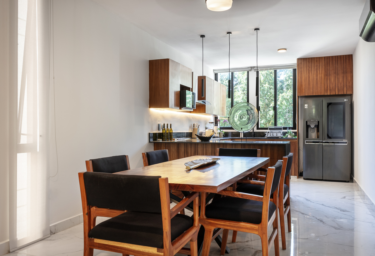 En un conjunto residencial con vigilancia privada, agua potable y muchas areas verdes. Un departamento 100% remodelado, con pisos y carpinteria buena calidad.