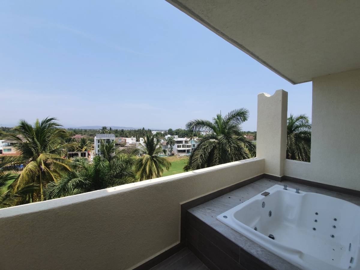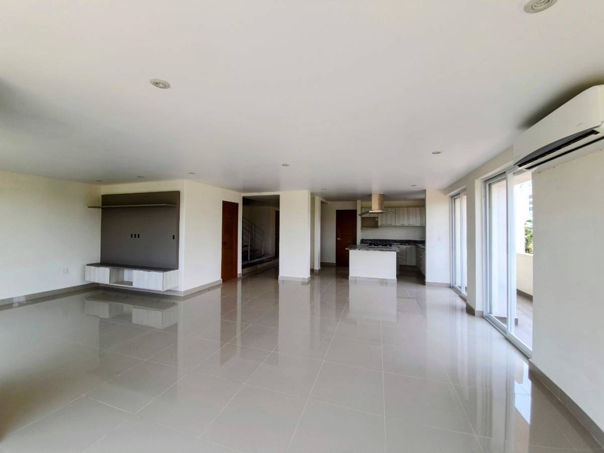 Subiendo por el elevador llegas a la planta baja donde hay sala, comedor y cocina totalmente abiertos, la escalera para subir y un área de lavado con baño. En la plata alta están las 3 recámaras, cada una con terraza o balcón, baño y la principal con vestidor y jacuzzi al exterior. Este departamento tiene además un área que puede ser utilizada como cuarto de tele o estudio.