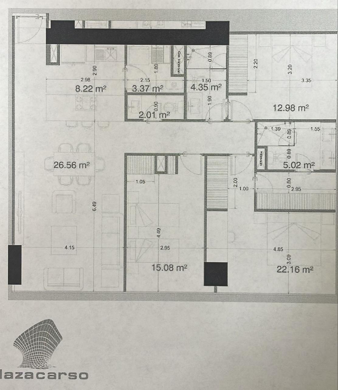 apartamento de esquina de 121 m2. 3 quartos. Quarto principal com banheiro completo e closet. Os outros dois quartos compartilham um banheiro. Banheiro de visitas. Ampla sala de estar e jantar. Área de lavanderia. Linda cozinha aberta. Tetos de 3 metros que proporcionam muita luz e amplitude. Ambientes muito amplos. Lindas vistas. 2 vagas de estacionamento. Acesso direto ao shopping. Conjunto completo de comodidades. Estacionamento para visitantes. Vigilância 24 horas. Torre muito bem localizada com todos os serviços ao redor. Pode ser alugado como aparece nas fotos ou sem móveis. ***Neste imóvel, corretores imobiliários não são permitidos***rentaplazacarso.com