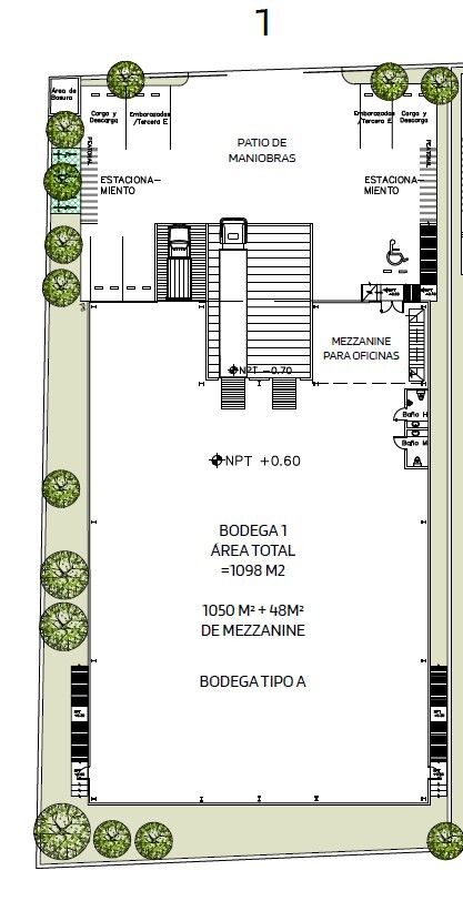 Superficie bodega interior= 1,050 m2 ; Ancho= 26.7 m