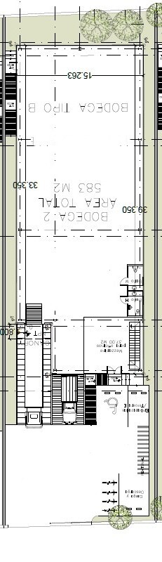 Superficie bodega interior= 583 m2; Ancho= 15.2 m
