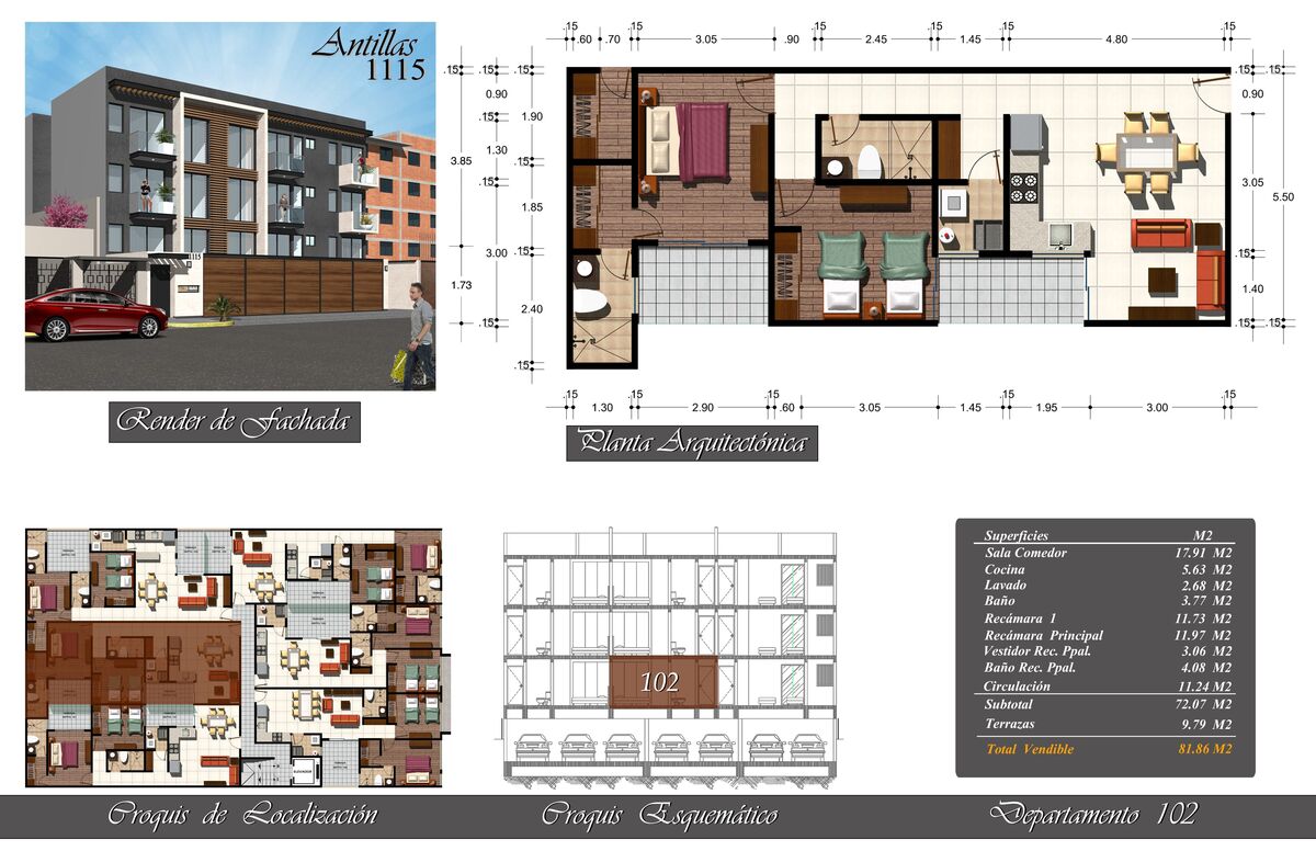 • Área total 81,80 m2