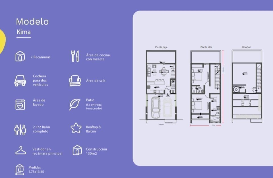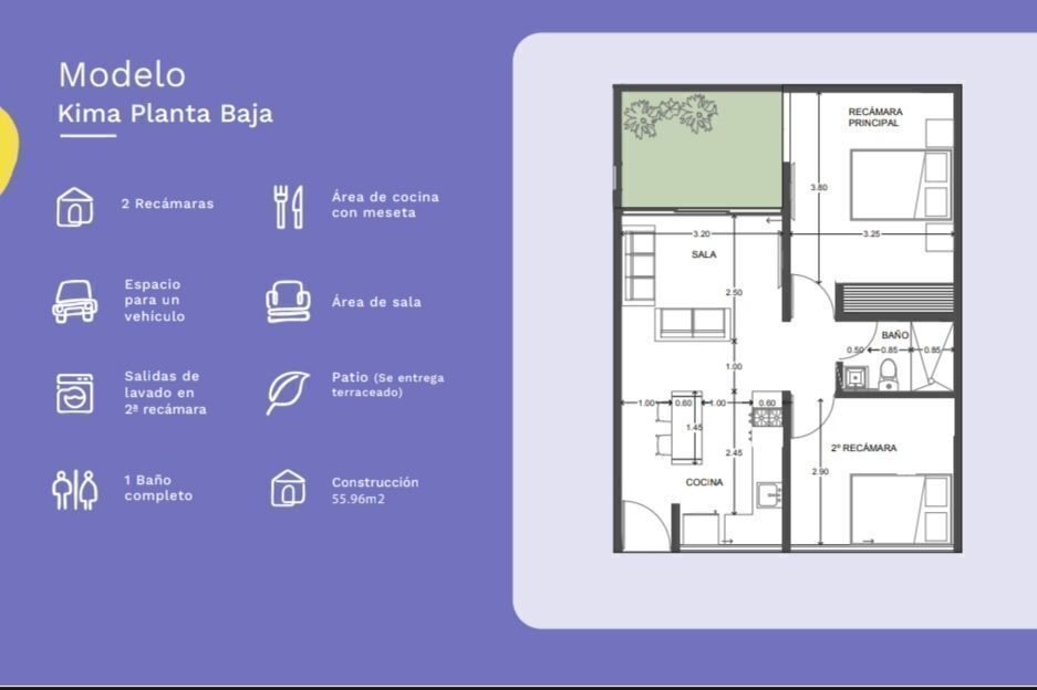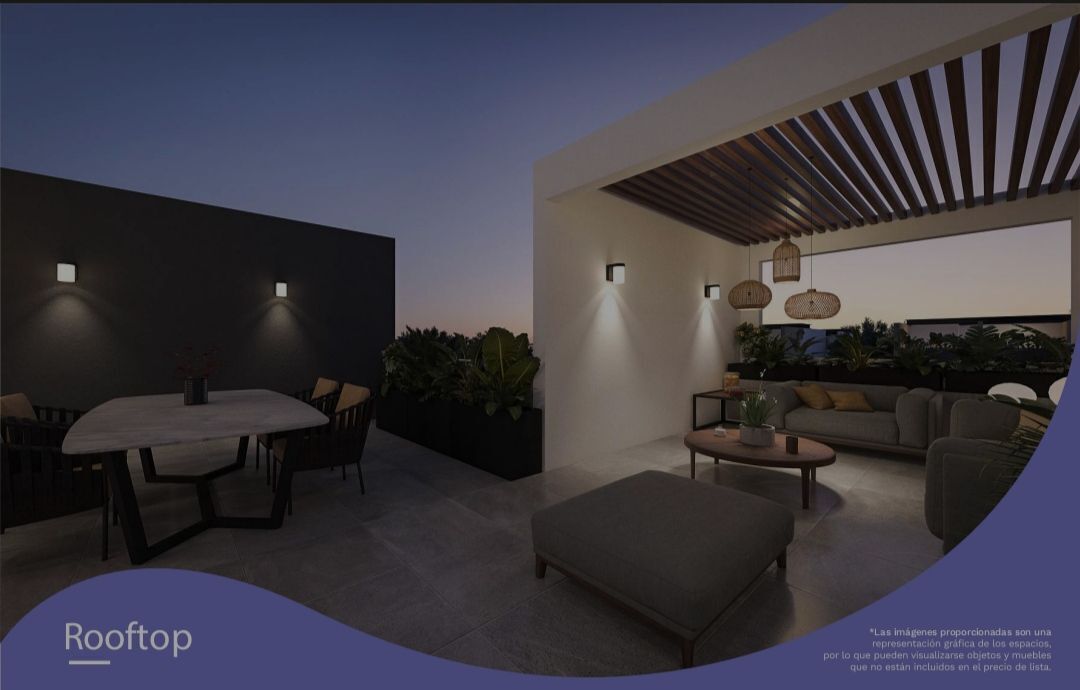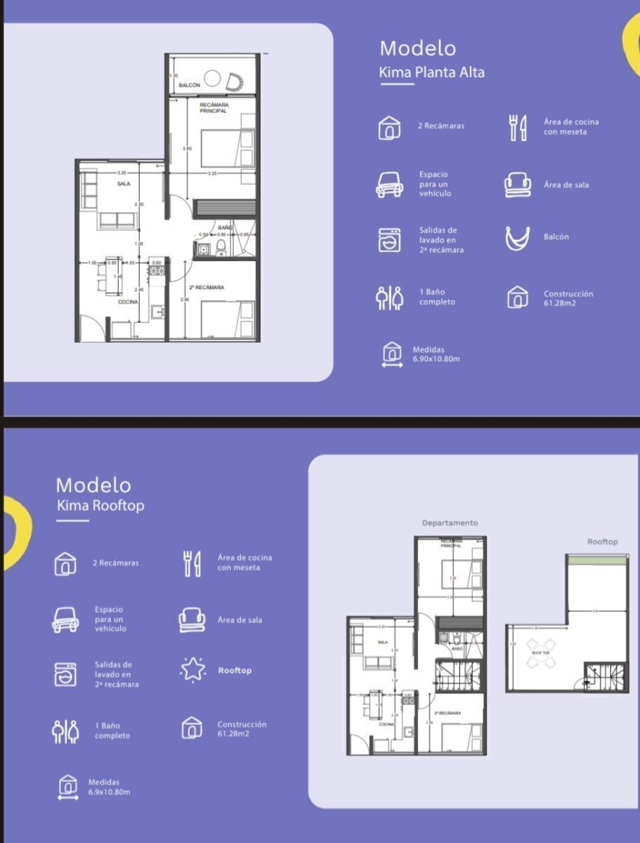 2 recamaras , ROOFTOP, área de cocina y meseta , área de sala, Espacio para 1 auto , 1 baño completo, salida de lavado en 2 recamara .