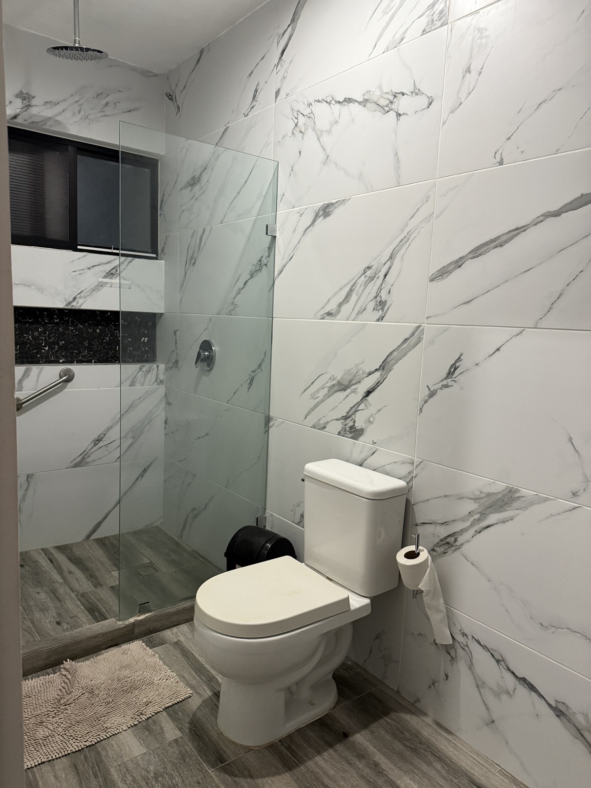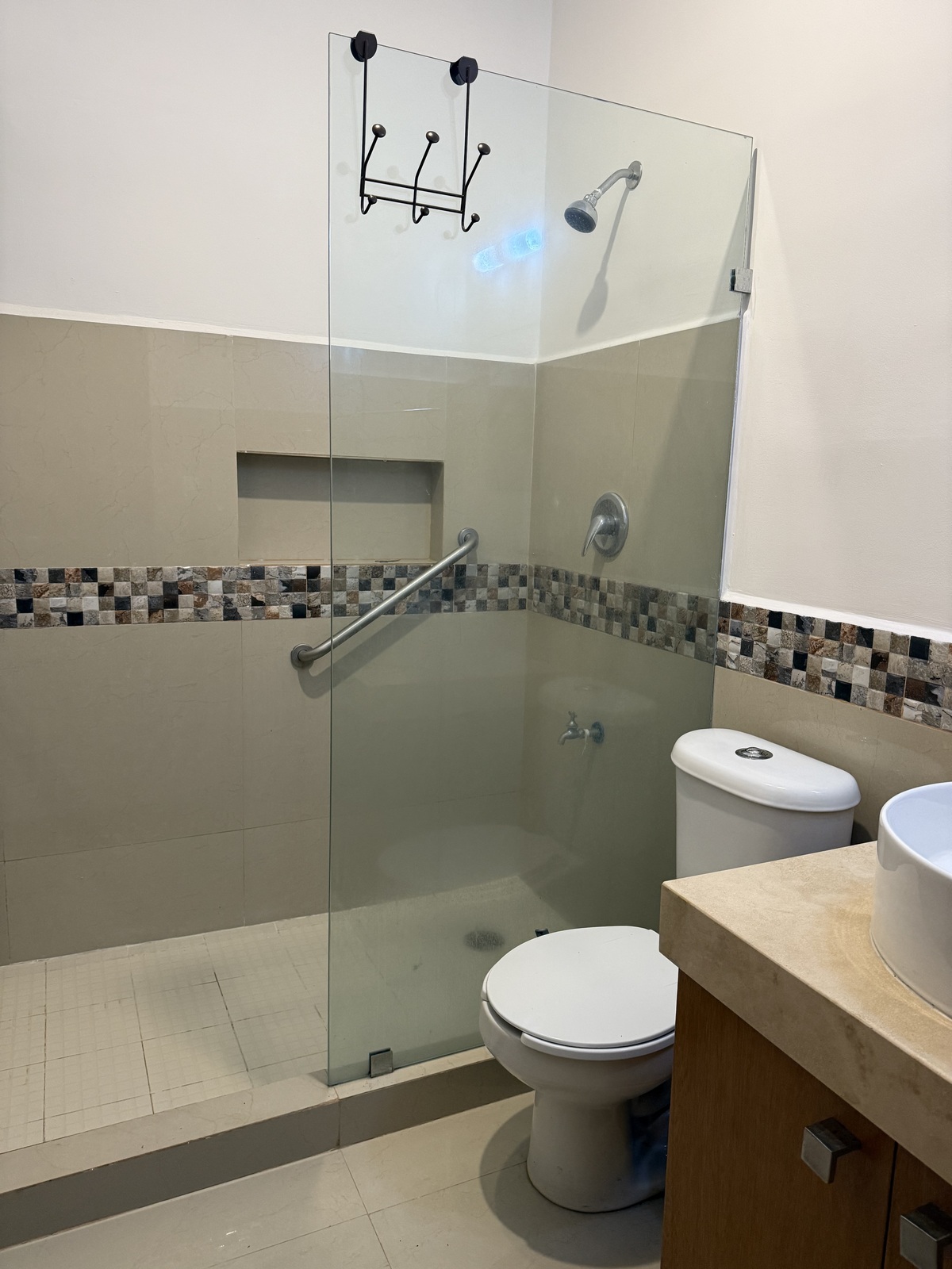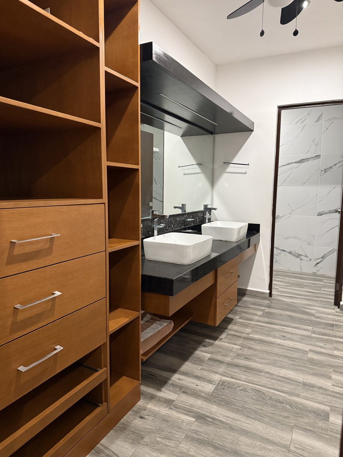 Recámara principal con clóset vestido grande y baño completo dentro de la habitación