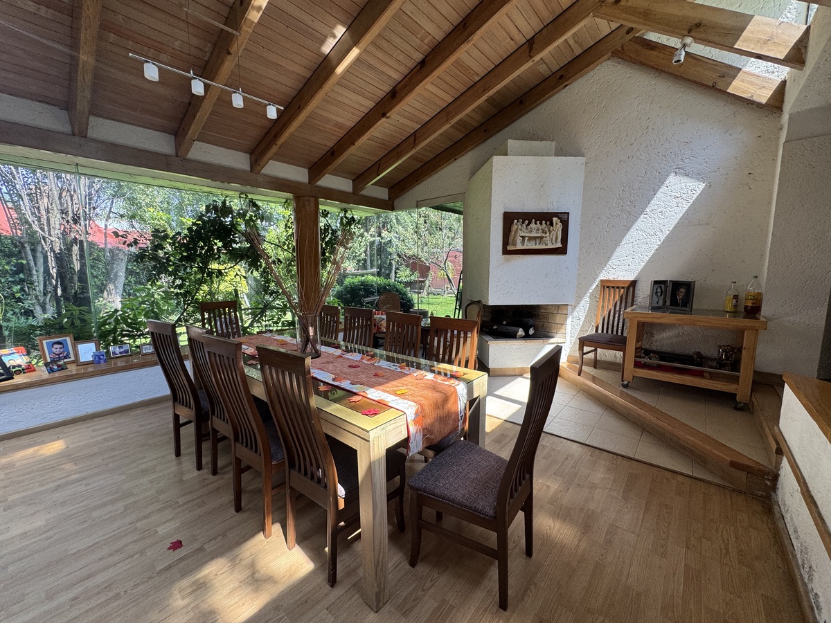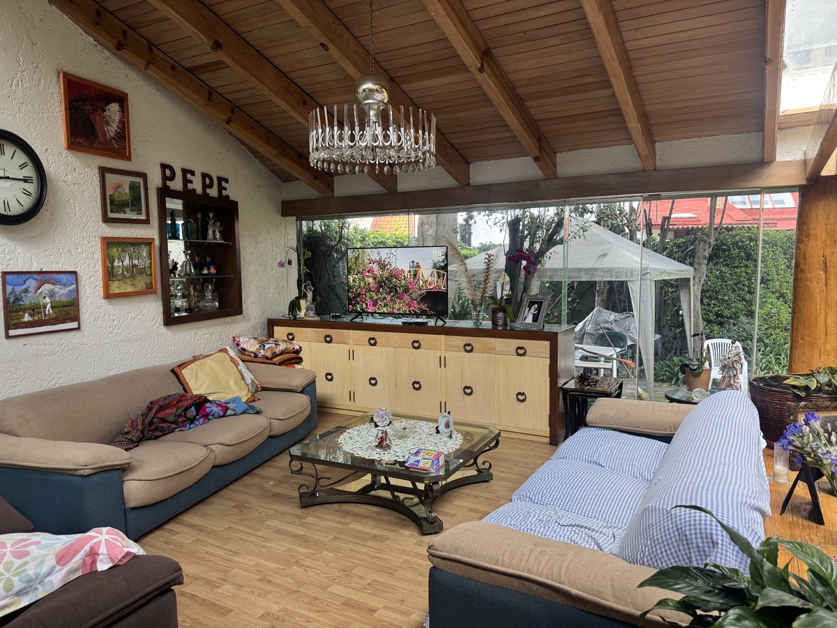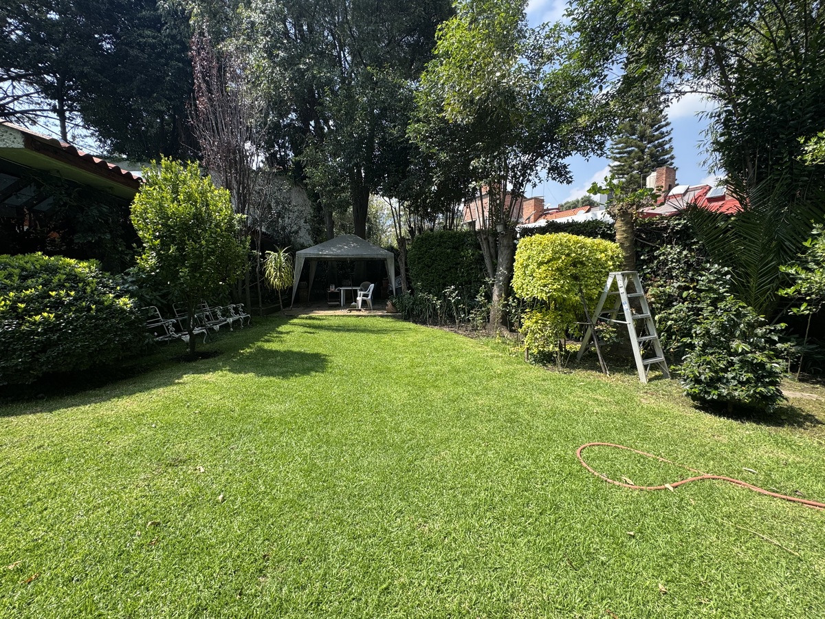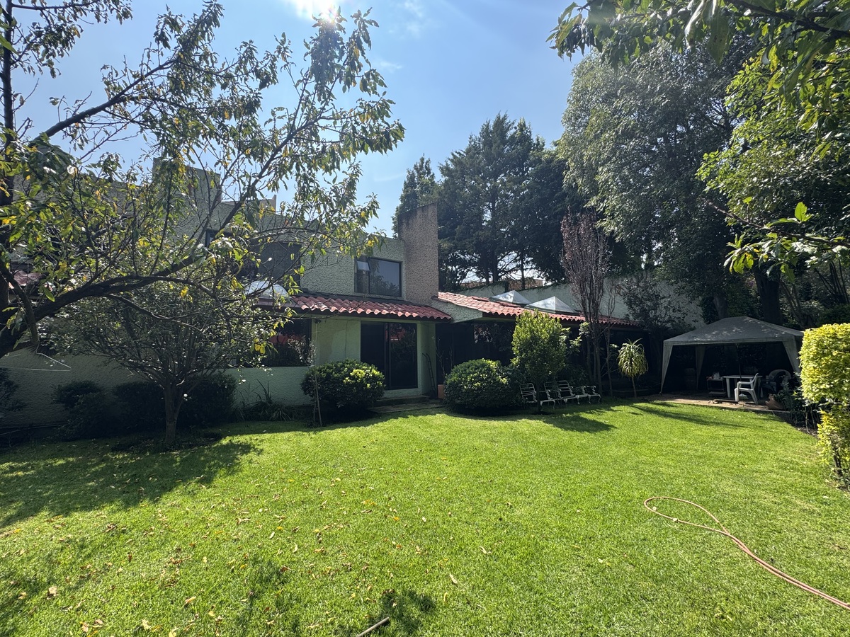 A casa conta com um quarto de serviço e 2 banheiros de serviço, despensa, cisterna, sistema hidropneumático, estacionamento para 6 carros.Casa en calle cerrada en Barrio de San Francisco , con increíble gran jardín y área Federal , consta de 3 amplias recámaras, 3. 5 baños , la recámara se encuentra en primer piso con walking clóset. Tiene una amplia sala comedor con chimenea, salida al jardín con árboles frutales y terraza, cuarto de televisión y estudio ,gran proyecto Ideal para actualizar y dejar a su gusto. Son 25 casas en el condominio muy seguro y cerca a los puentes de Santa Fe.