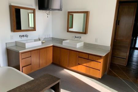 - O segundo andar tem uma sala de TV e 3 quartos, todos com banheiro e vestiário. O principal com dois vestiários e outro estudo ou área de trabalho privada.