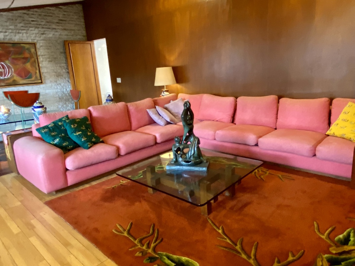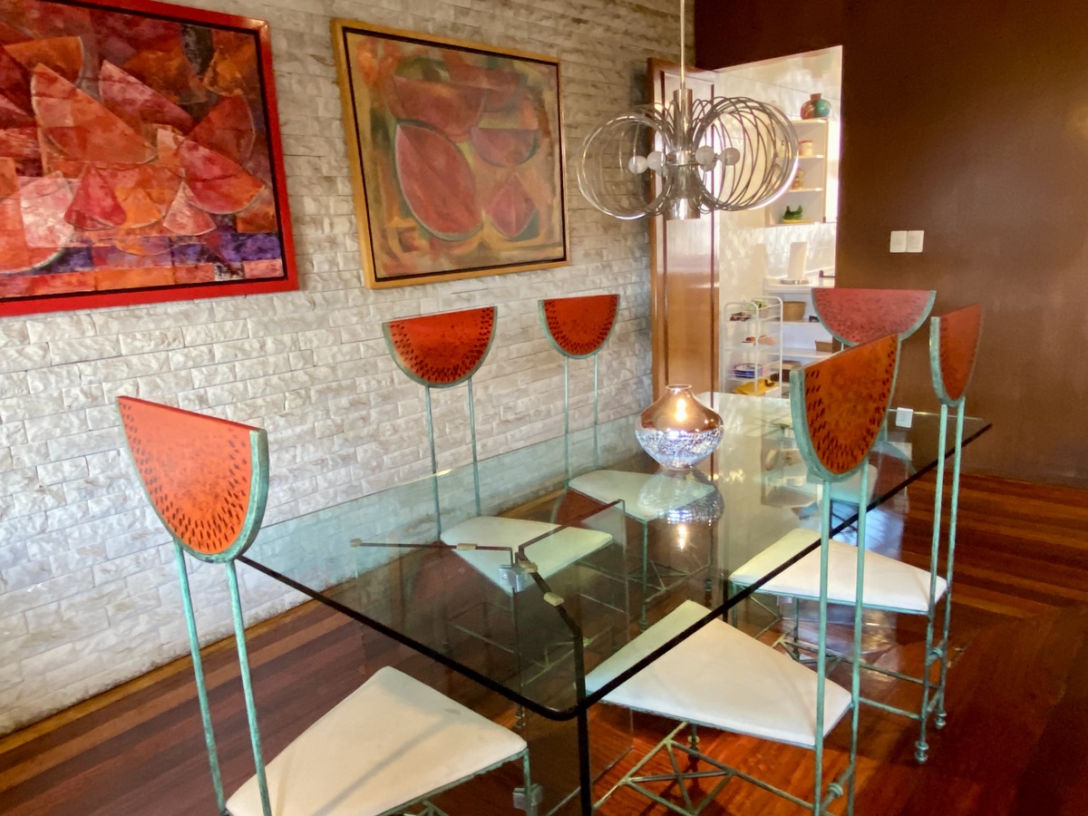 Construída em andares intermediários, é composta por um vestíbulo, uma sala muito ampla, sala com lareira e sala de jantar com janelas grandes que proporcionam muita luz e sensação de amplitude. Cozinha integrada com balcão, uma área de café da manhã independente em um espaço com pé direito duplo, e com uma cúpula, o que cria um lugar único e iluminado. Tem uma sala de família ou escritório. Lavabo para visitantes.