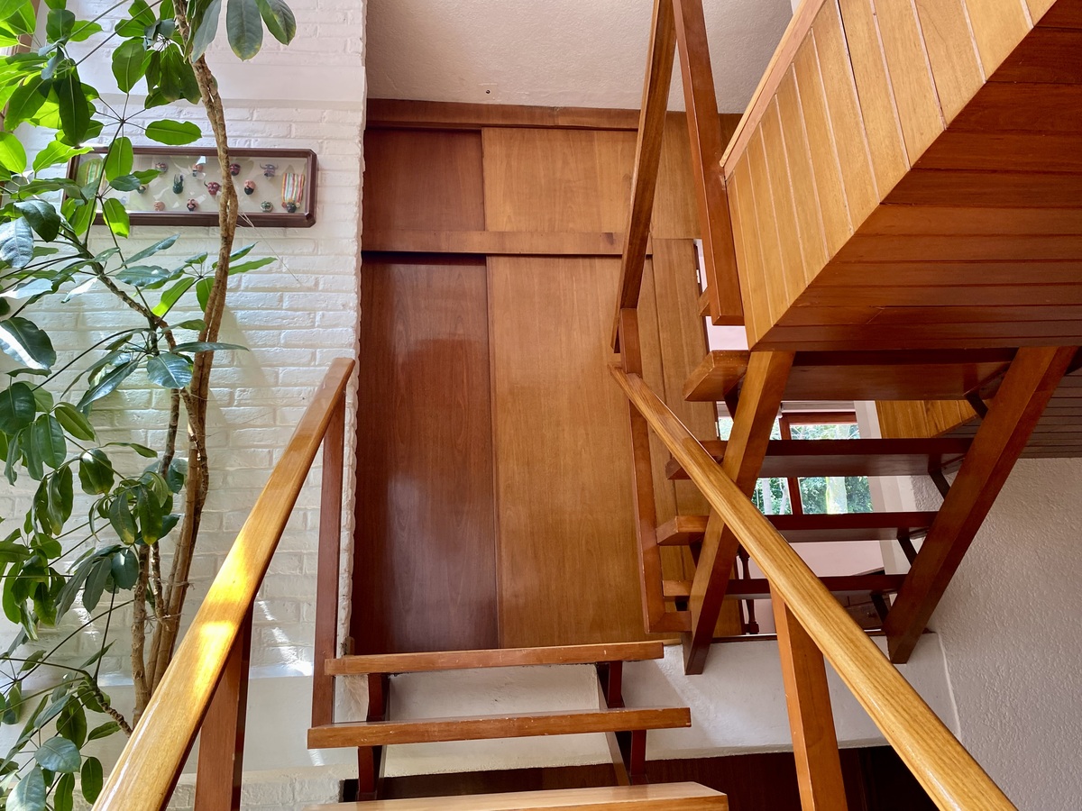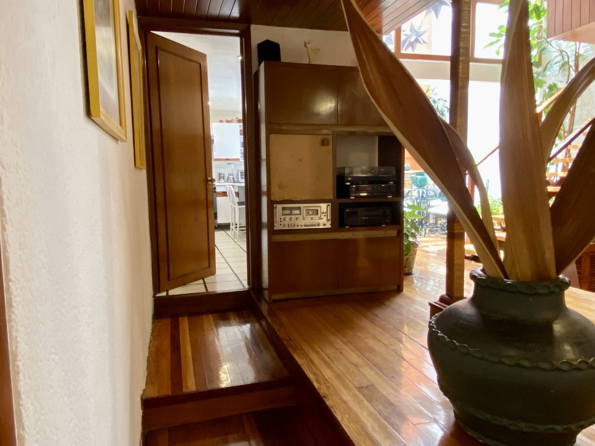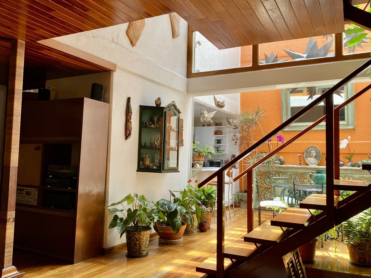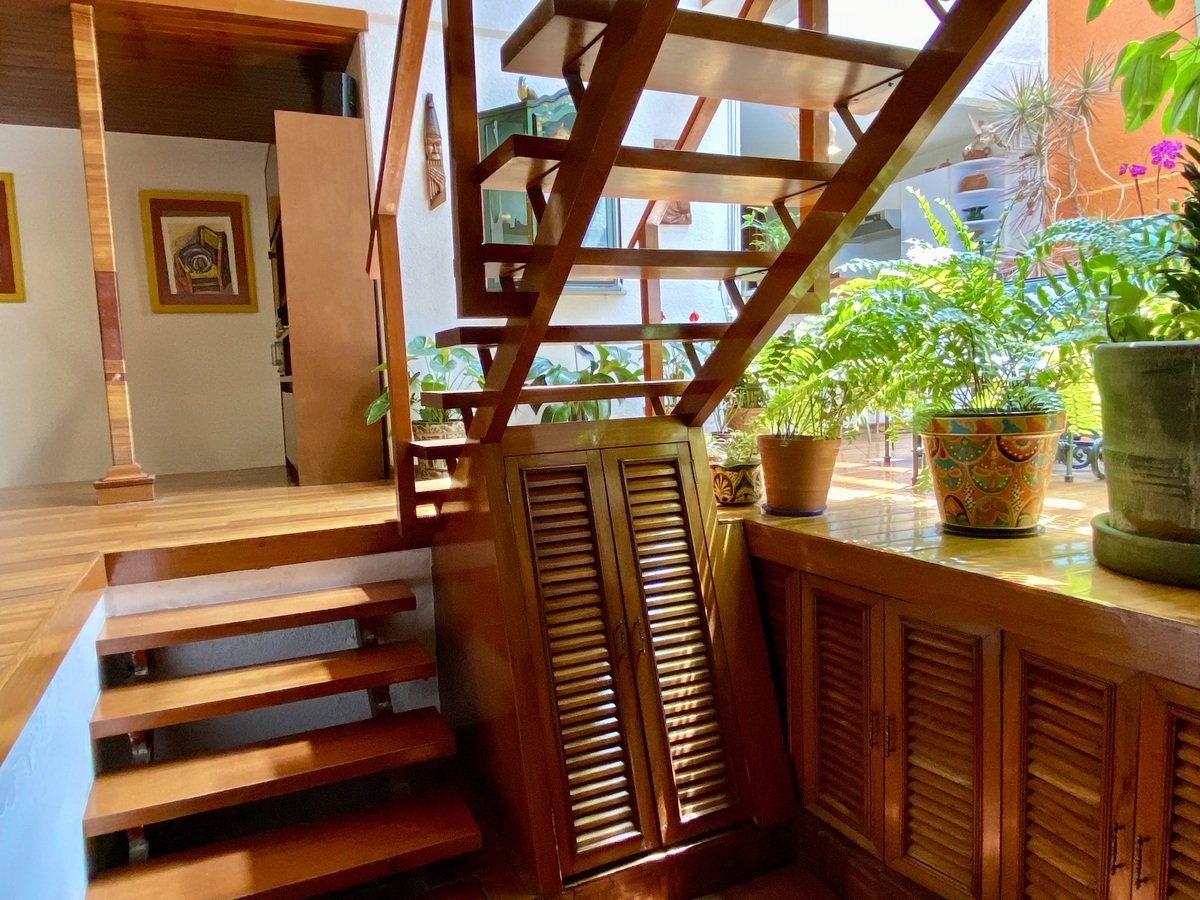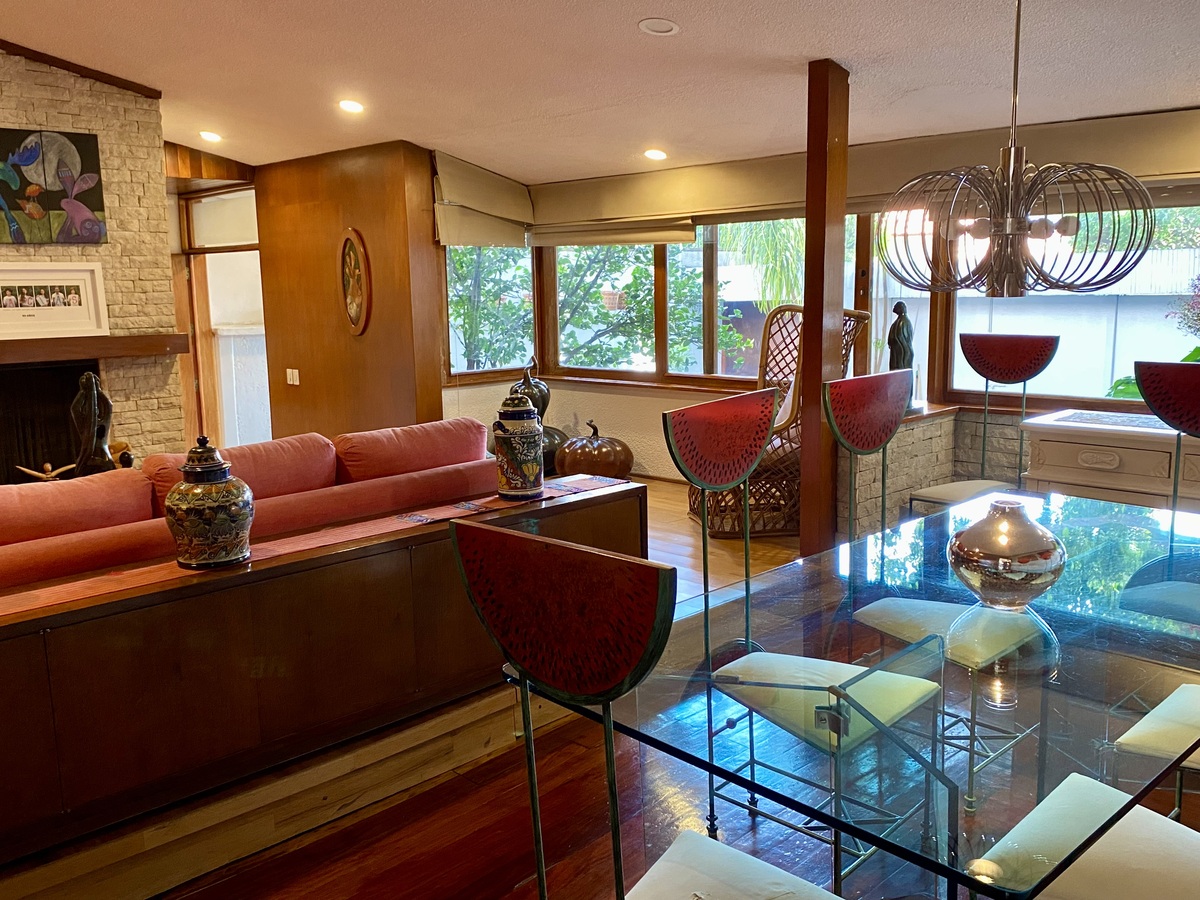 Una de las áreas más bonitas de la casa, es la biblioteca con muebles de madera, doble altura y con acceso a un patio interior, que pudiera ser acondicionada como una terraza muy agradable.