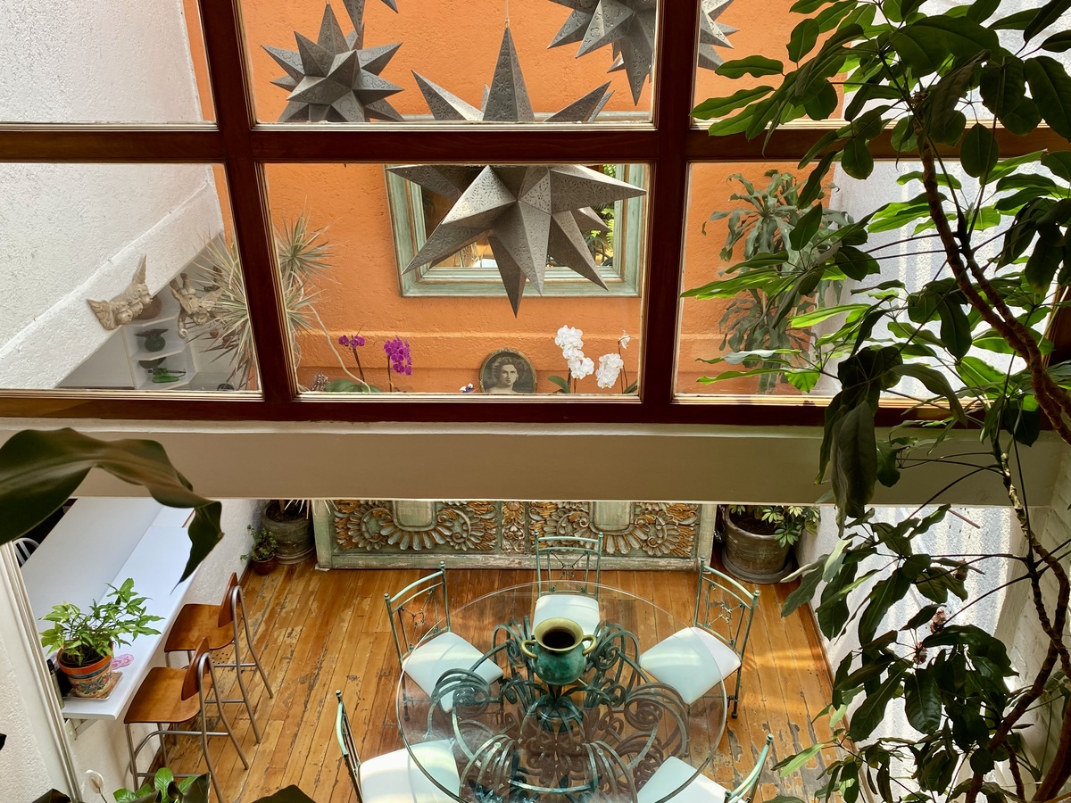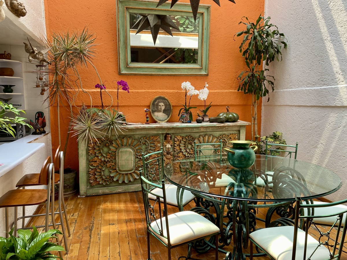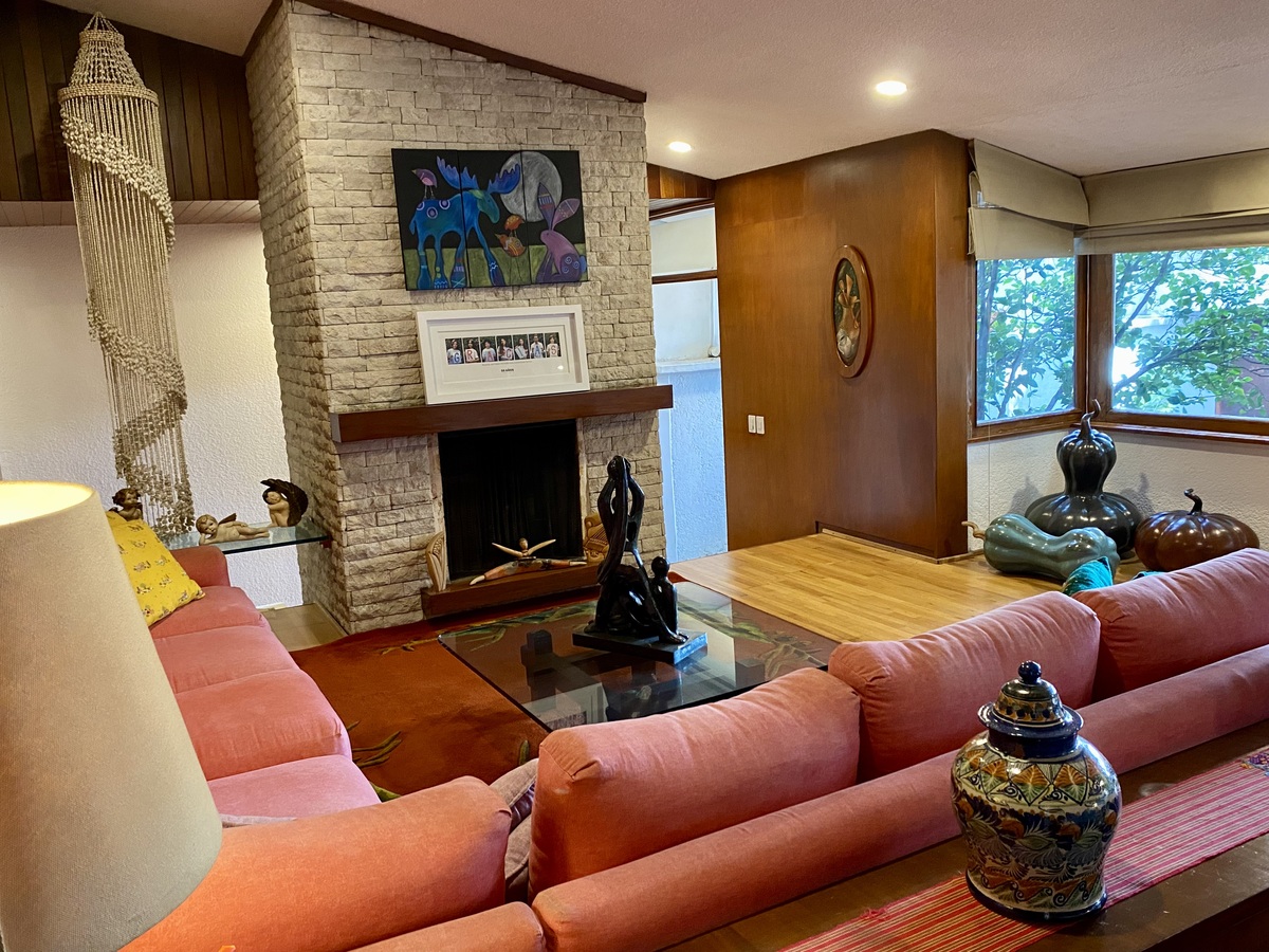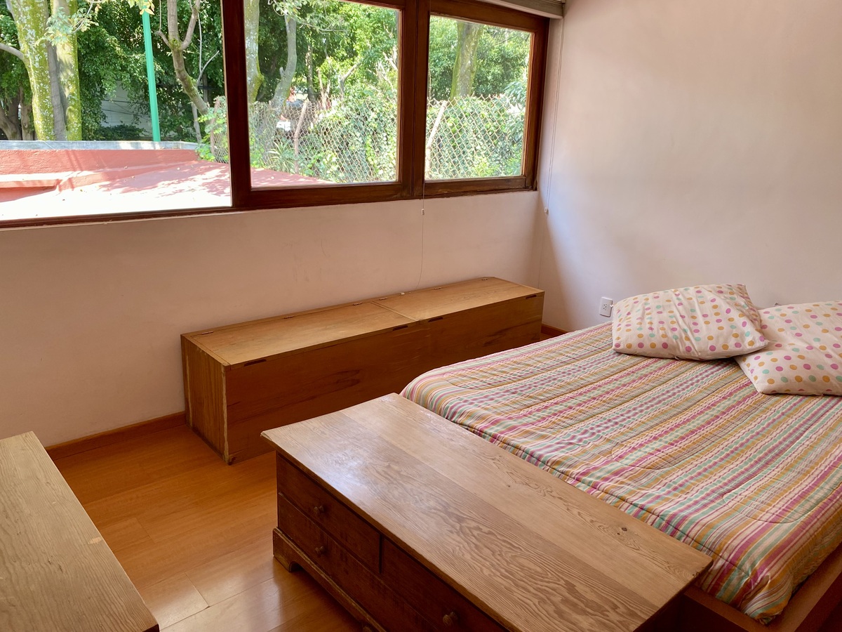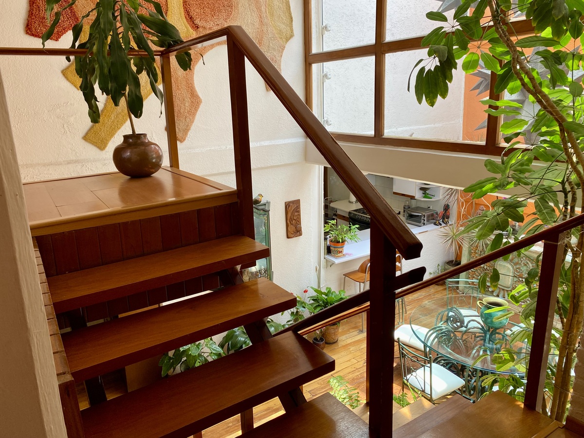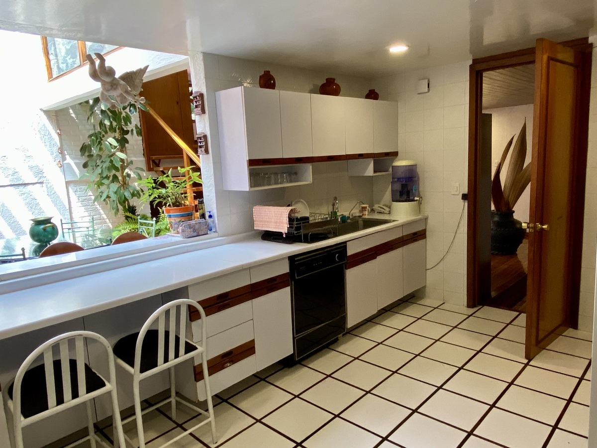 Una de las áreas más bonitas de la casa, es la biblioteca con muebles de madera, doble altura y con acceso a un patio interior, que pudiera ser acondicionada como una terraza muy agradable.