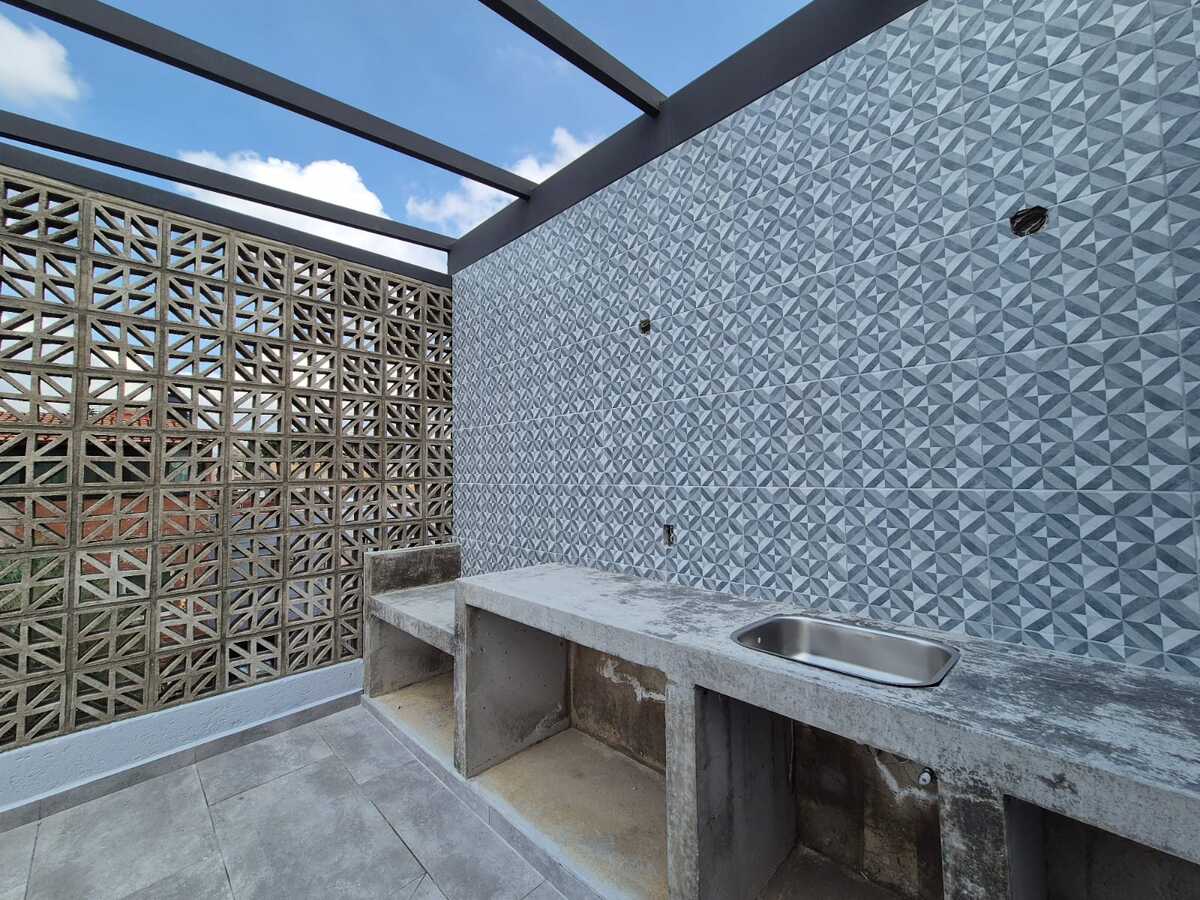 Tem um bar com churrasqueira e conexões para aproveitar o terraço.