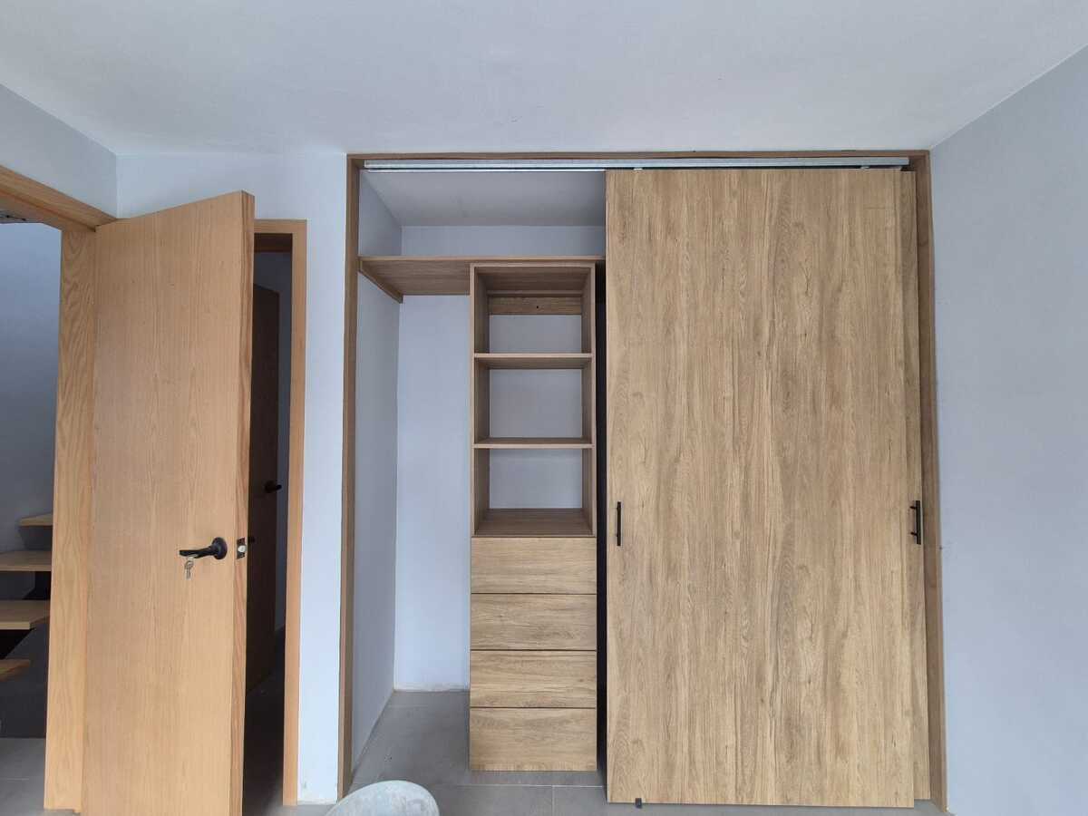 -3 recamaras, la principal con baño privado, las otras dos comparten baño, todas con closet.