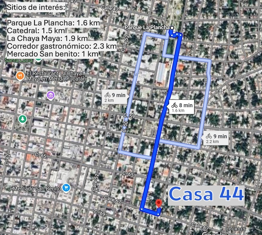 Casa en venta en el Centro de la ciudad de Mérida Yucatán, barrio de San Benito, a sólo 1.6 km del parque de La Plancha y 1.5 km de La Plaza Grande. Fácil acceso y conectividad a los sitios de interés más importantes de la ciudad que incluye restaurantes, museos y mercados.