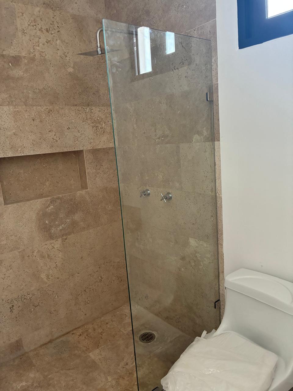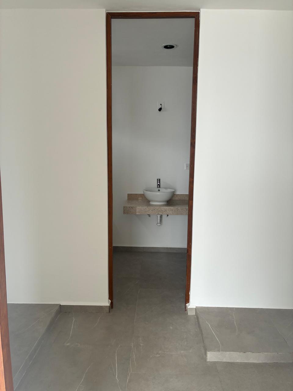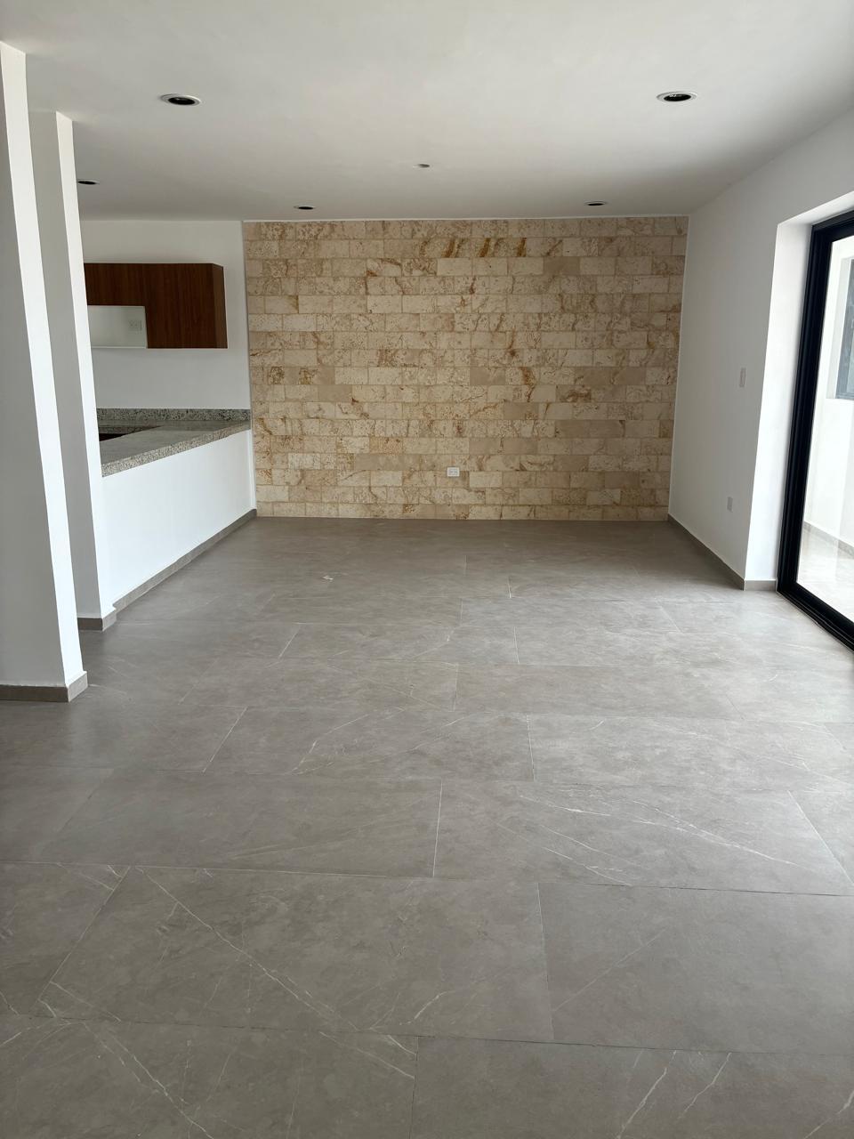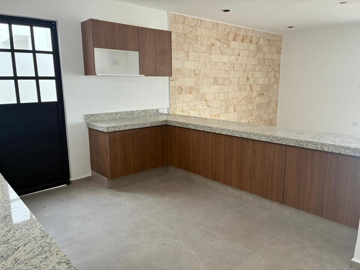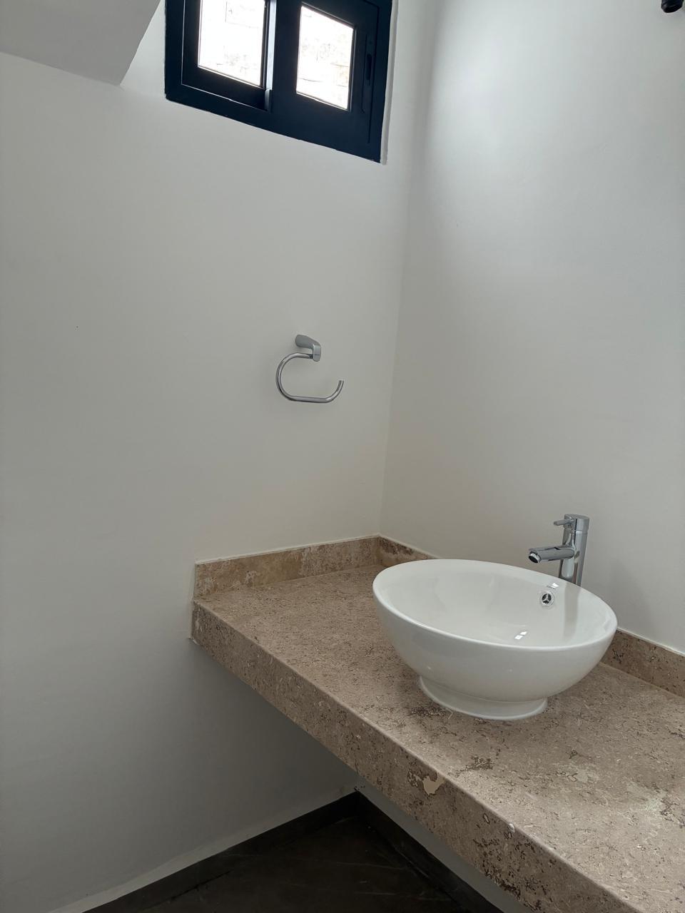 Equipamiento: Carpintería en cocina, campana, carpintería debajo de lavabos, accesorios en baños, pisos de mármol en escaleras, mármol travertino en área de regadera en baños, canceles en baños, alberca, cochera techada, barda perimetral, paneles solares, muro interior decorativo con acabado de piedra crema maya laminada, pisos de cerámica formato 60 cm x 120 cm