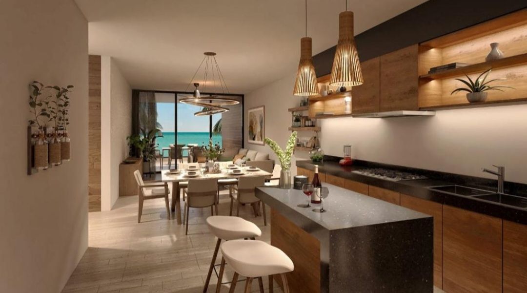-Cocina vestida: parrilla eléctrica, meseta de granito, carpintería