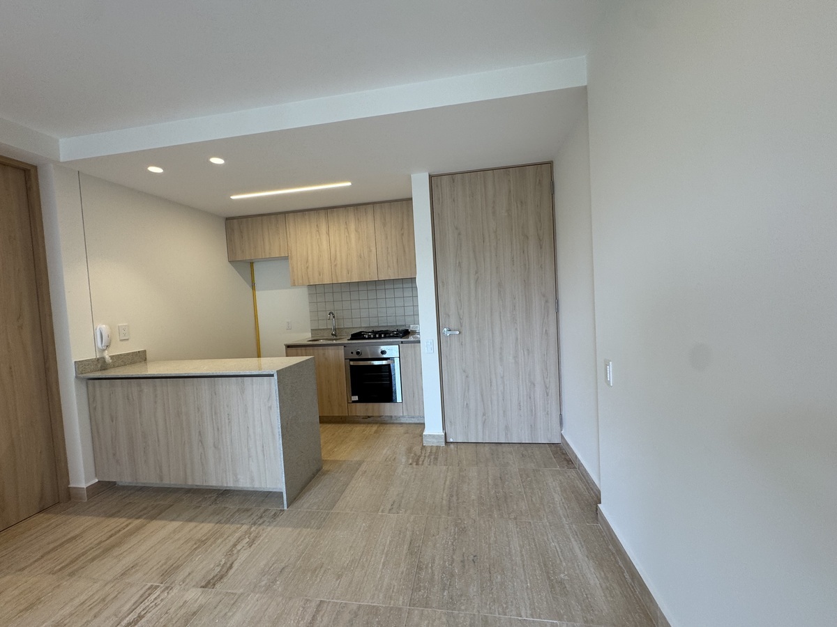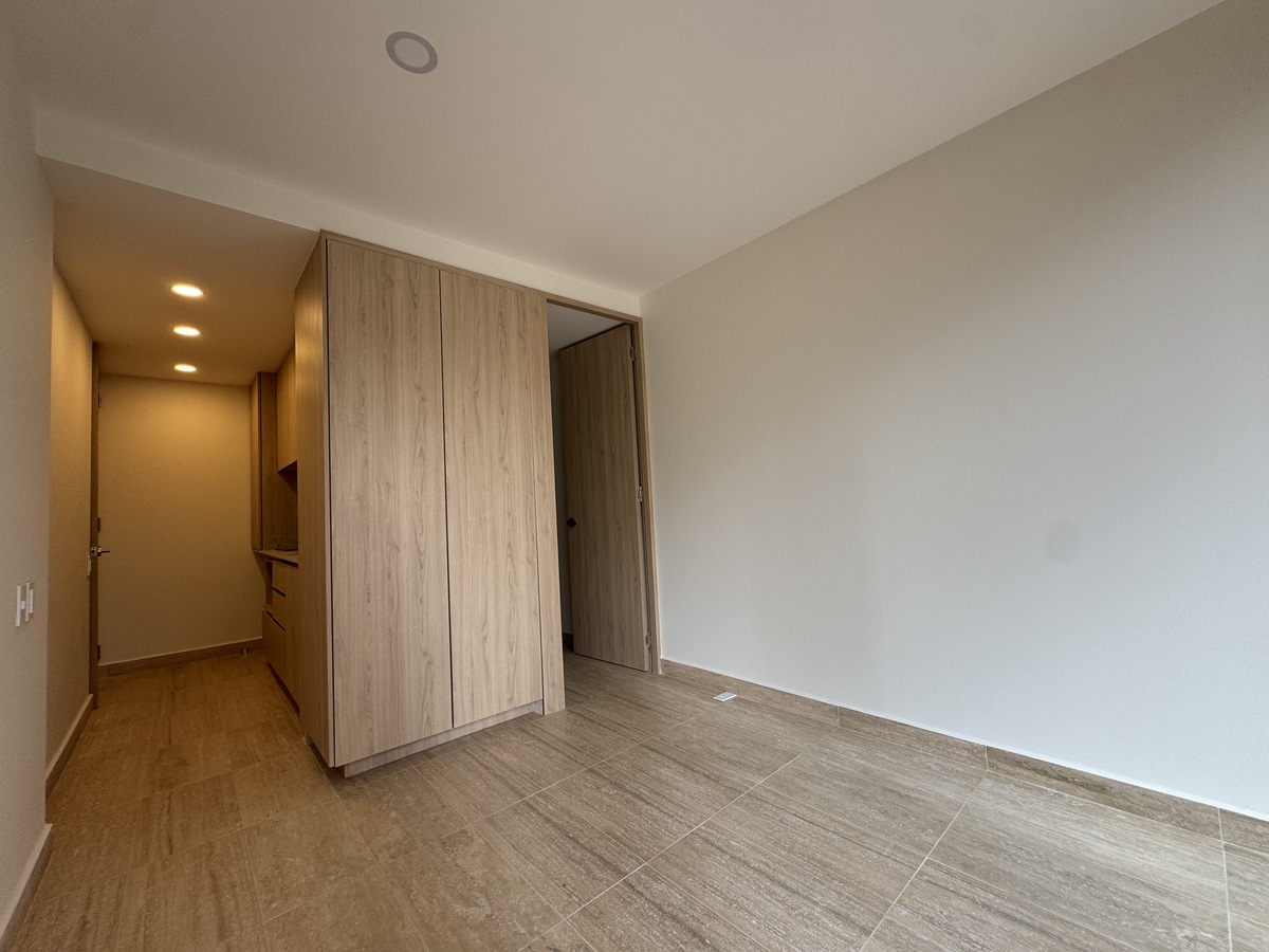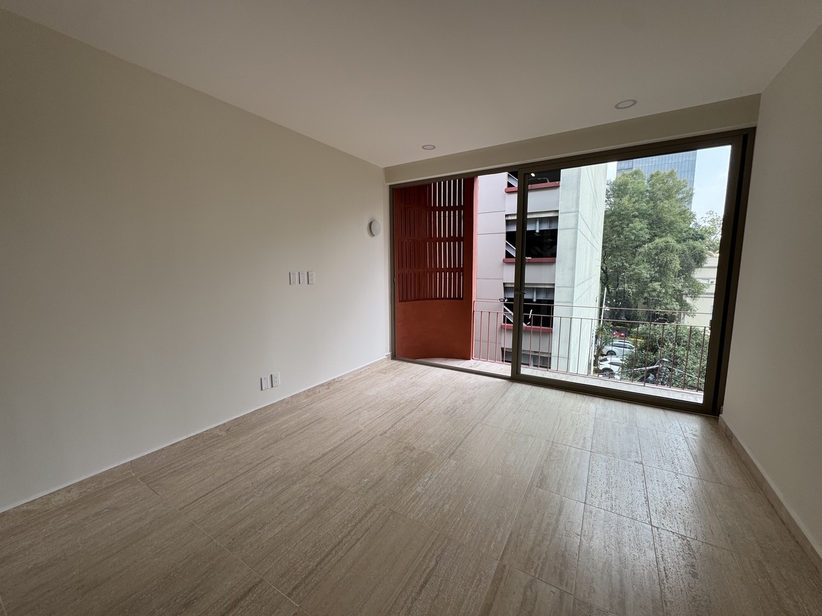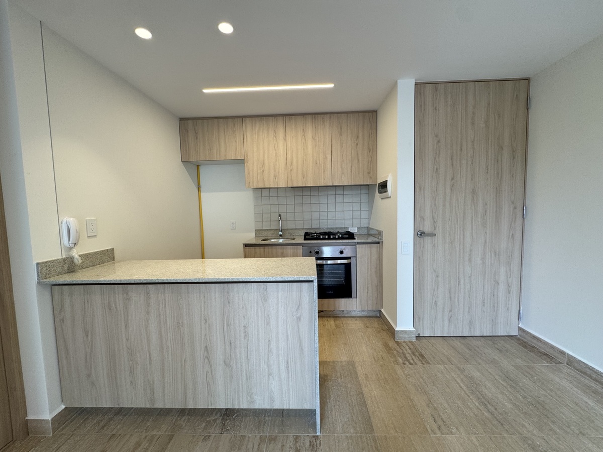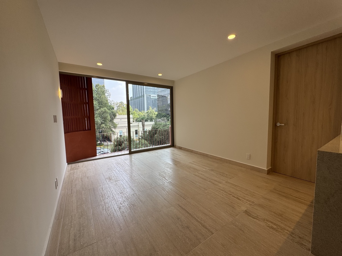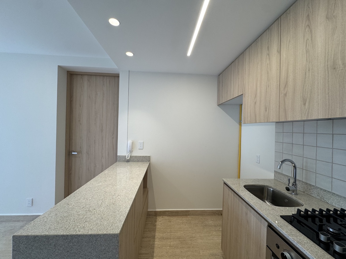 75 m2, 2 recamaras, 11 m2 de terraza, estancia, comedor, cocina, recámara principal con walking–closet y baño, recámara secundaria baño, cocineta, acceso directo.
