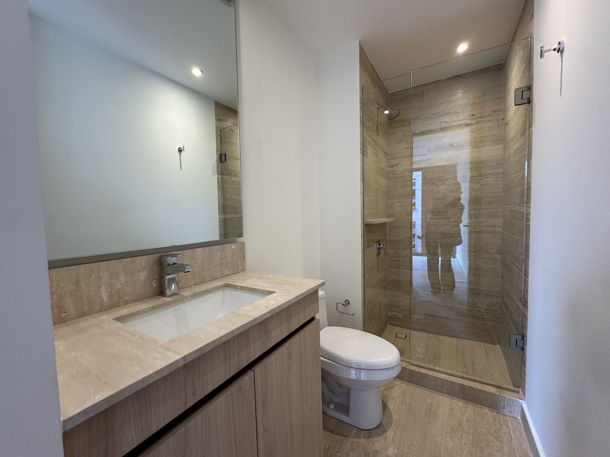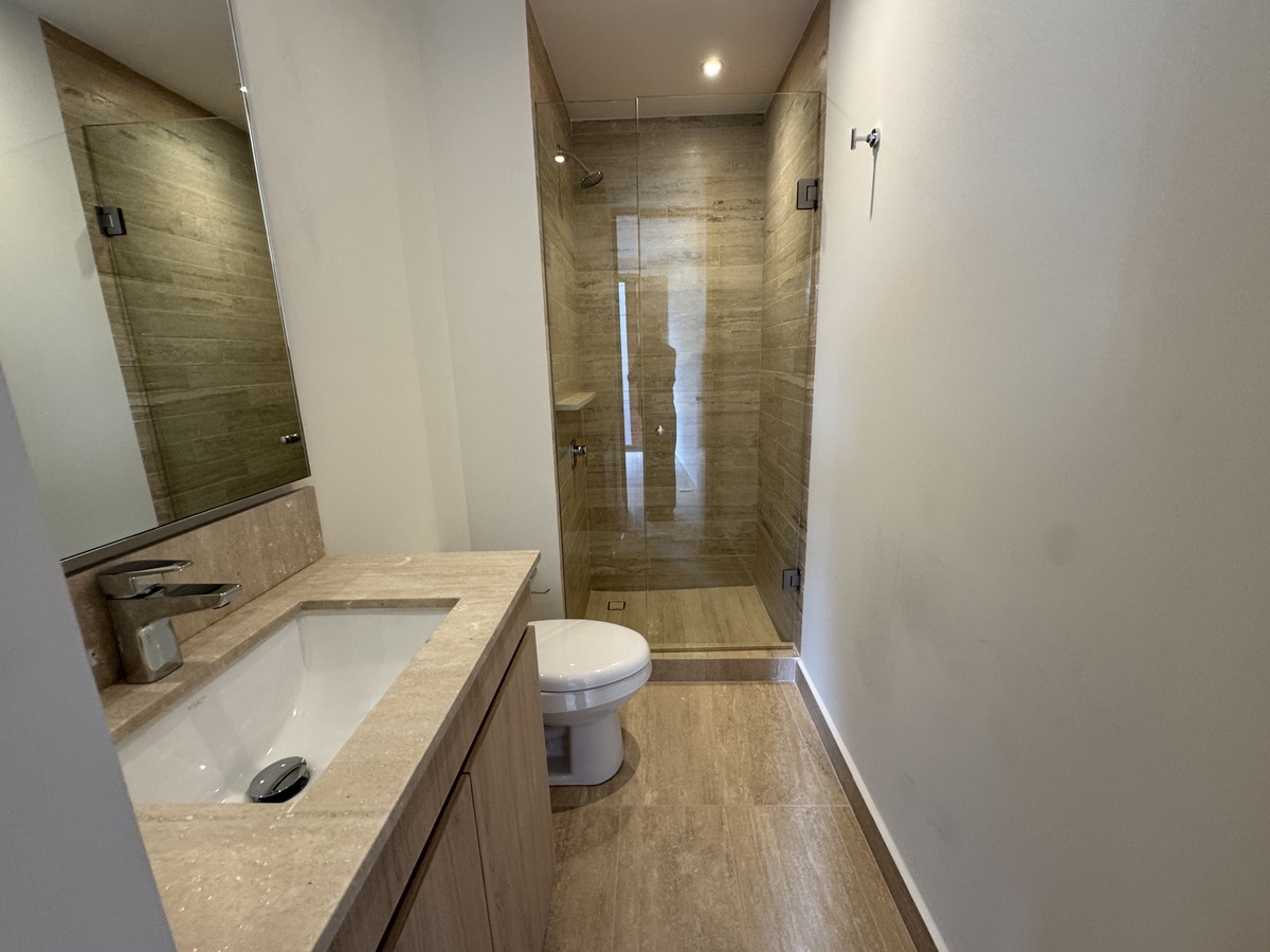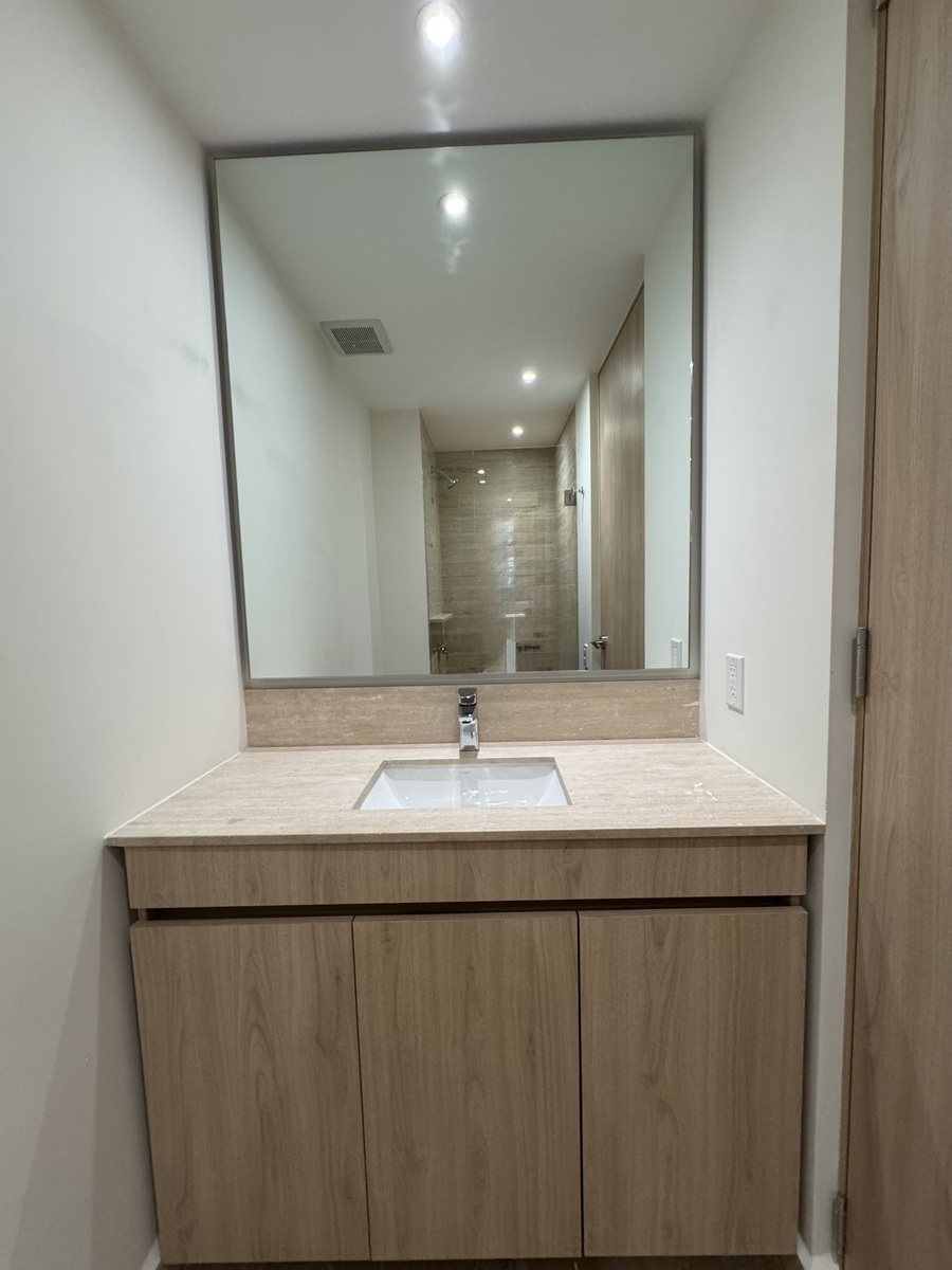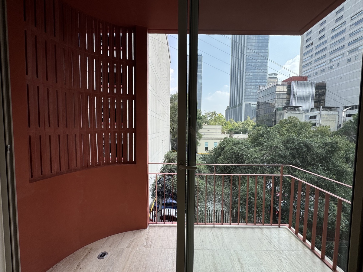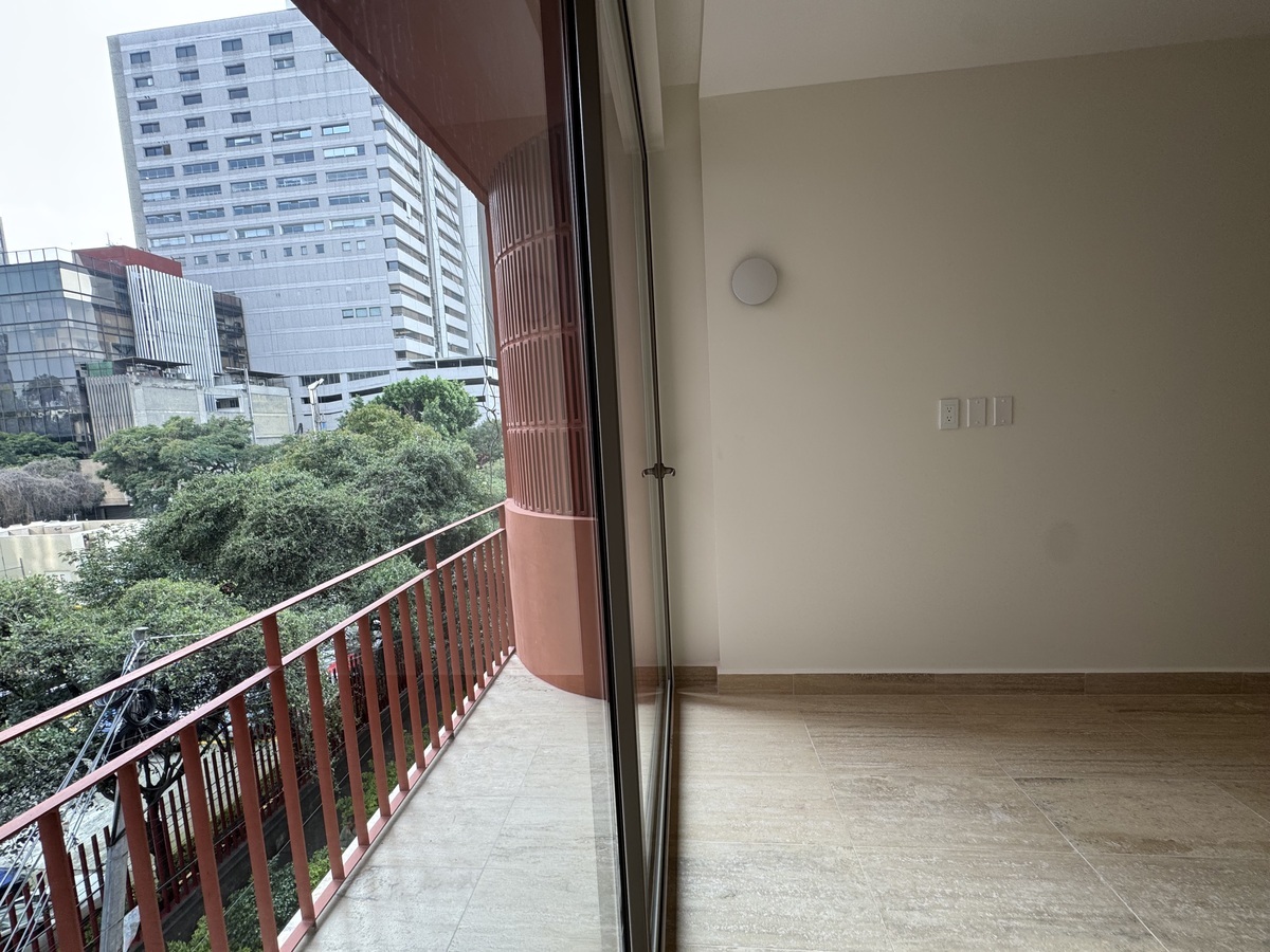75 m2, 2 recamaras, 11 m2 de terraza, estancia, comedor, cocina, recámara principal con walking–closet y baño, recámara secundaria baño, cocineta, acceso directo.