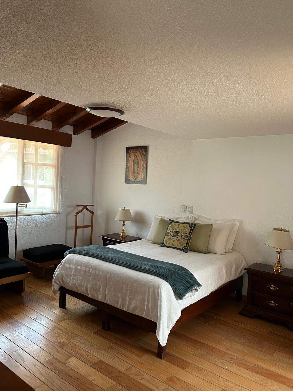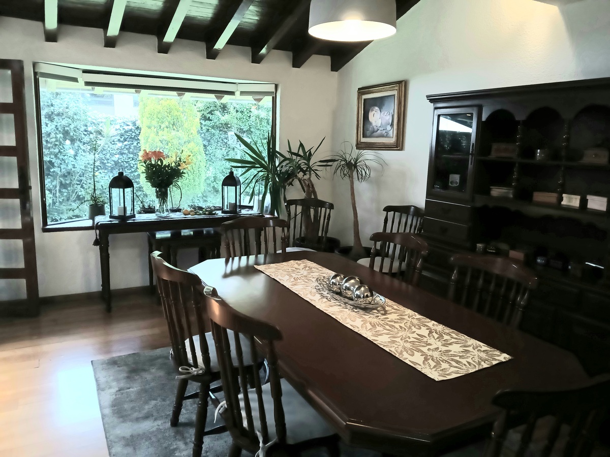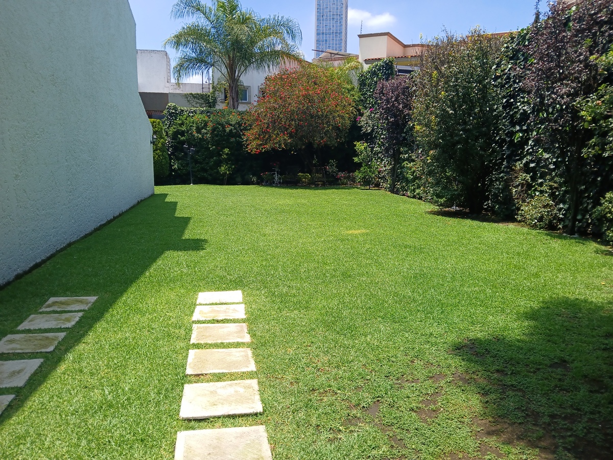 Distribuida en dos niveles, es un oasis de diseño y confort. La planta baja cuenta con un elegante estudio, bar y cava, baño y closet de visitas, sala y un luminoso comedor que se conecta a una terraza donde podrás desayunar casi todos los días del año, la cual a su vez se abre paso a un espectacular jardín privado de 250 m² (terreno contiguo). Este espacio actualmente funge como el escenario perfecto para eventos y reuniones, ofreciendo un entorno verde y exclusivo.