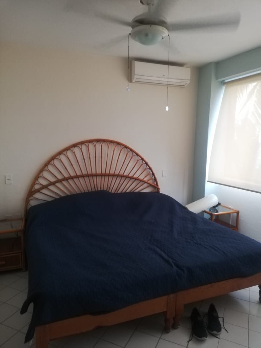 Departamento con dos camas king size, un sofa-cama, tres aites acondicionados, lavadora, secadora, licuadora, horno microondas, horno electrico y control automatico de estacionamiento.