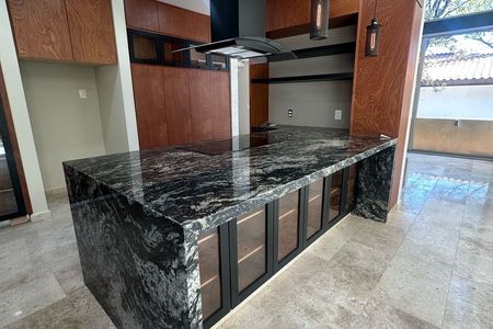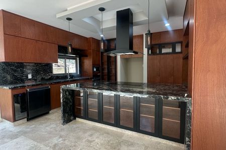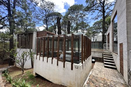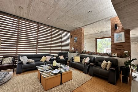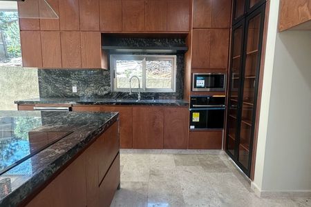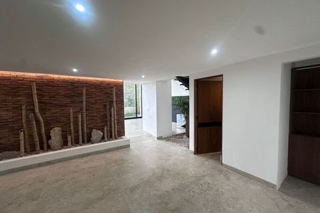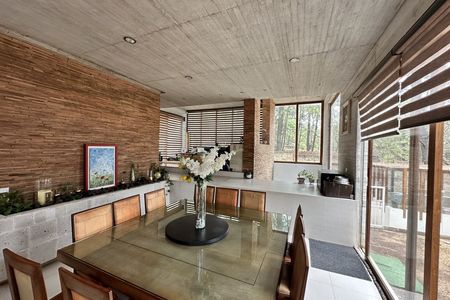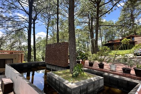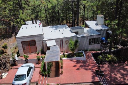 Planta baja: Cocina integral, medio baño, cuarto de servicio, estudio, sala con chimenea, comedor, terraza, jardín, cochera para 3 autos.