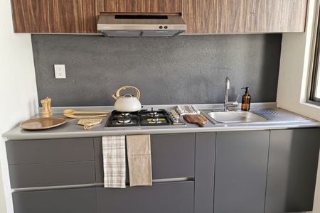 Planta baja: sala comedor, cocina integral, medio baño, patio de servicio.