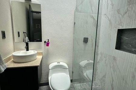 Planta alta: 1 recámara con vestidor y baño completo, 2 habitaciones secundarias, 1 baño completo.