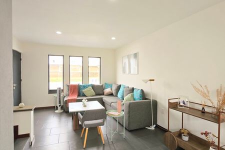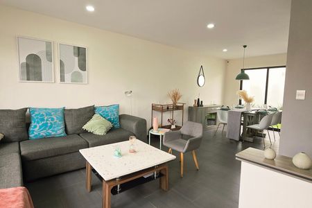 MODELO ALEXANDRINA: Sala, comedor, cocina integral equipada, medio baño, estudio; 3 habitaciones en planta alta; 2.5 baños en total, patio de servicio, jardín, cochera para 2 autos.