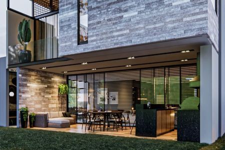 Equipada con: calentador solar para 10 personas; interfón con 4 cámaras, sistema de riego automático; sistema fotovoltaico para ahorro de energía eléctrica; tanque estacionario de 300kg; calentador de paso con doble quemador.