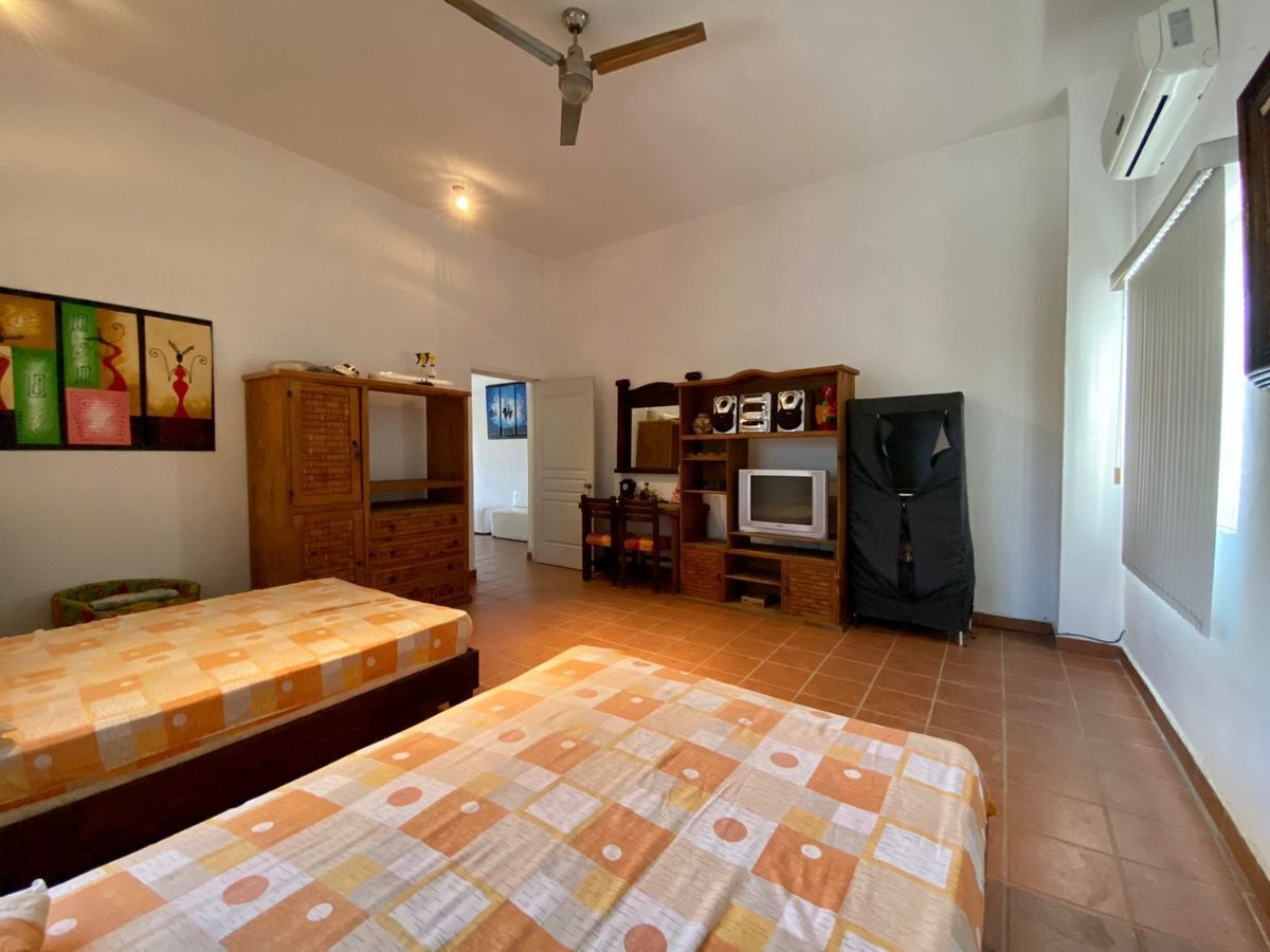 Acceso independiente, pórtico amplio y fresco que permite el acceso a la planta baja que es un espacio abierto con techo de 4 metros de alto, donde se ubica la sala, el comedor, estancia, cocina forrada en azulejo, con tiro y barra, 8 abanicos de techo y un baño completo. El acceso a la planta alta es independiente y tiene 4 habitaciones: una recámara con baño completo, clima, persianas y abanico; la recámara principal con clima, abanico, persianas, baño completo con puerta independiente para darle servicio a las otras dos recámaras, y una terraza que permite disfrutar la vista hacia las albercas y áreas verdes.