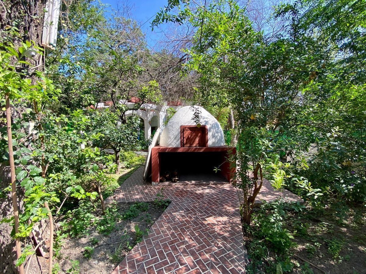 Cuenta con su palapa con dos asadores, ataúd, tarja, barra, área forrada en azulejo; junto a esta área se encuentra un cuarto grande habilitado como biblioteca.