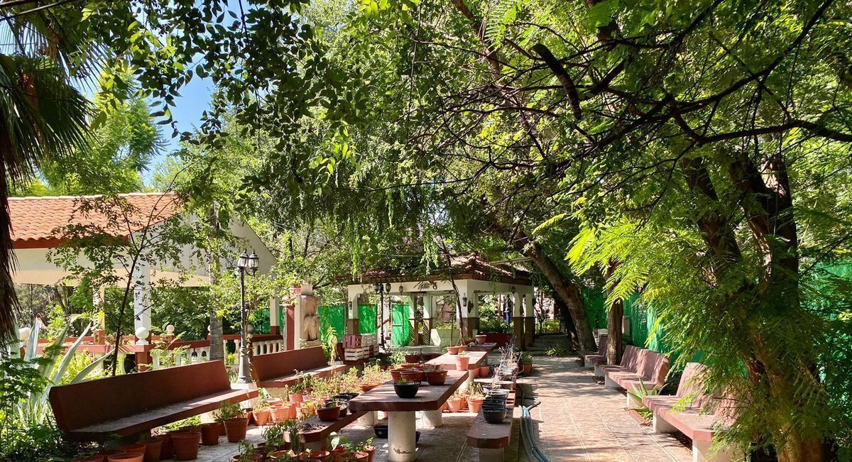 Cuenta con más de 70 arboles: nogales, encinos, anacuas, mezquites, framboyanes, rompevientos, naranjos, limoneros, granados, nísperos, perales, aguacates, ciruelos, plantas de nopales, magueyes, etc.