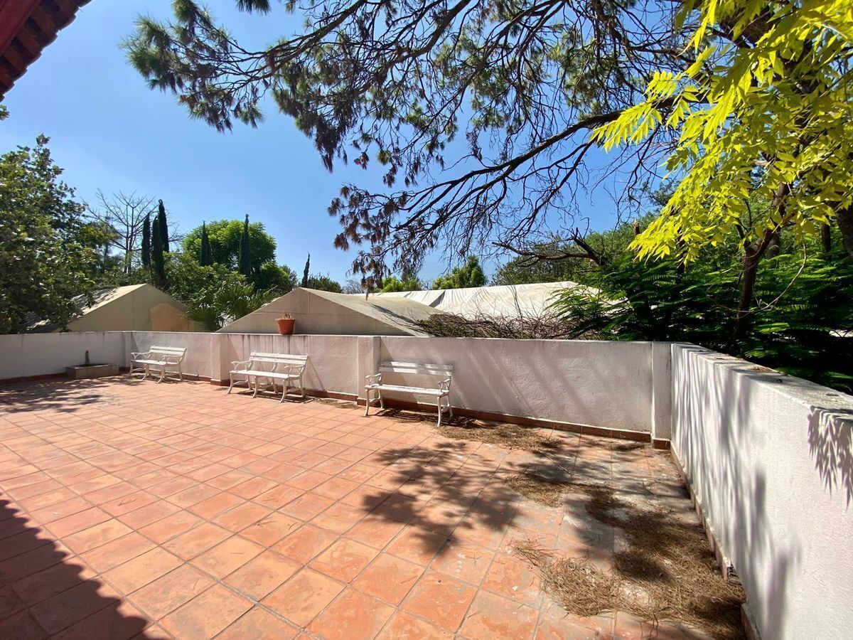 Acesso separado, varanda ampla e fresca que permite o acesso ao piso térreo, que é um espaço aberto com teto de 4 metros de altura, onde estão localizados a sala de estar, sala de jantar, sala de estar, cozinha de azulejos, com gavetão e bar, 8 ventiladores de teto e banheiro completo. O acesso ao andar superior é independente e tem 4 quartos: um quarto com banheiro completo, clima, persianas e ventilador; o quarto principal com controle de temperatura, ventilador, persianas, banheiro completo com porta separada para atender os outros dois quartos e um terraço que permite apreciar a vista das piscinas e áreas verdes.