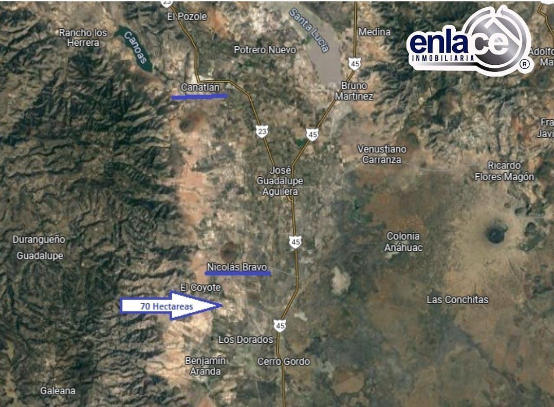 Localizado em Nicolás Bravo, município de Canatlán Dgo.* 70 hectáreas de riego.