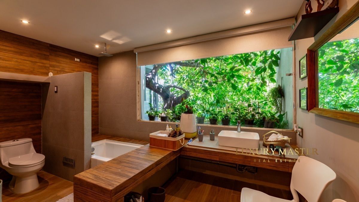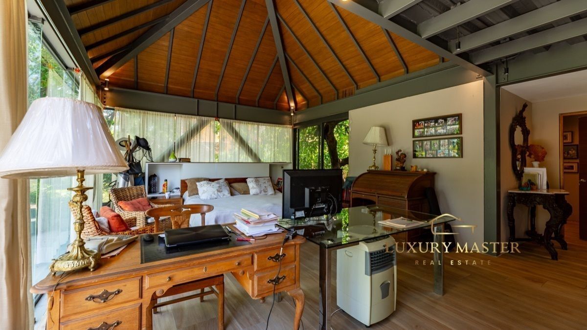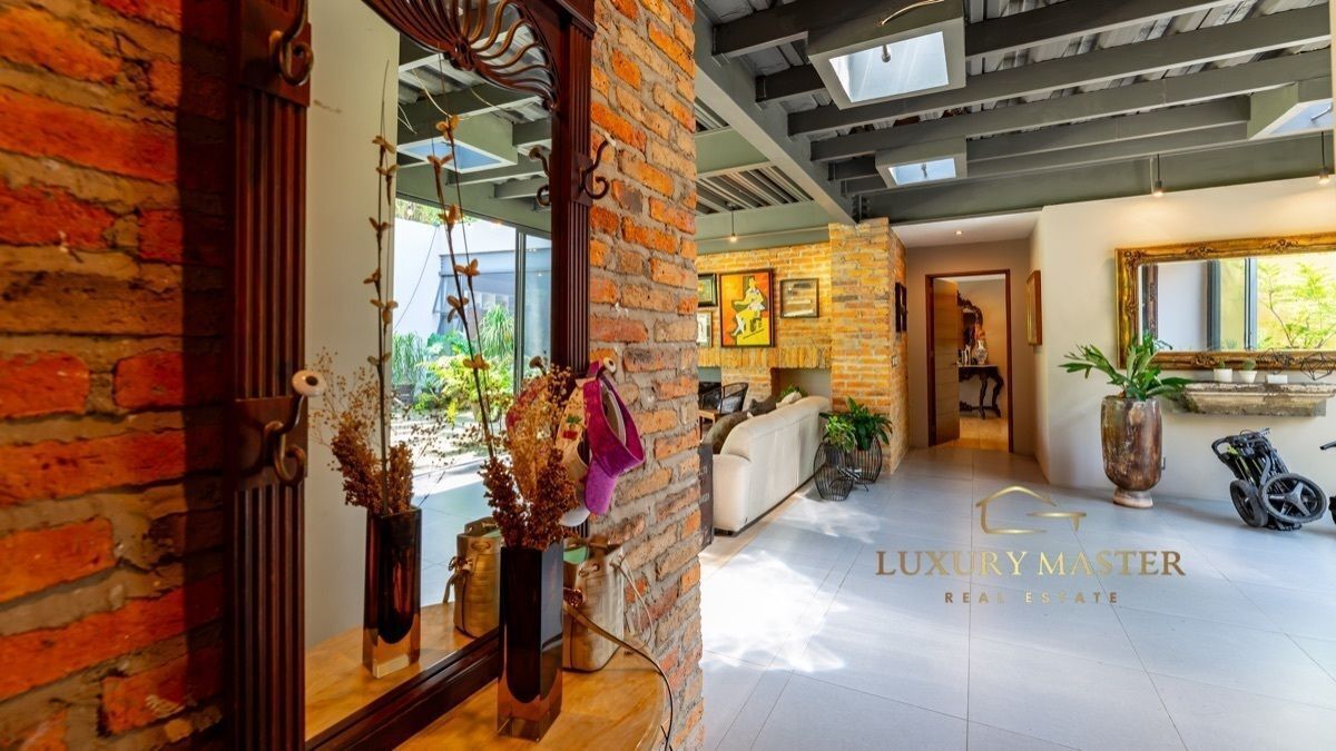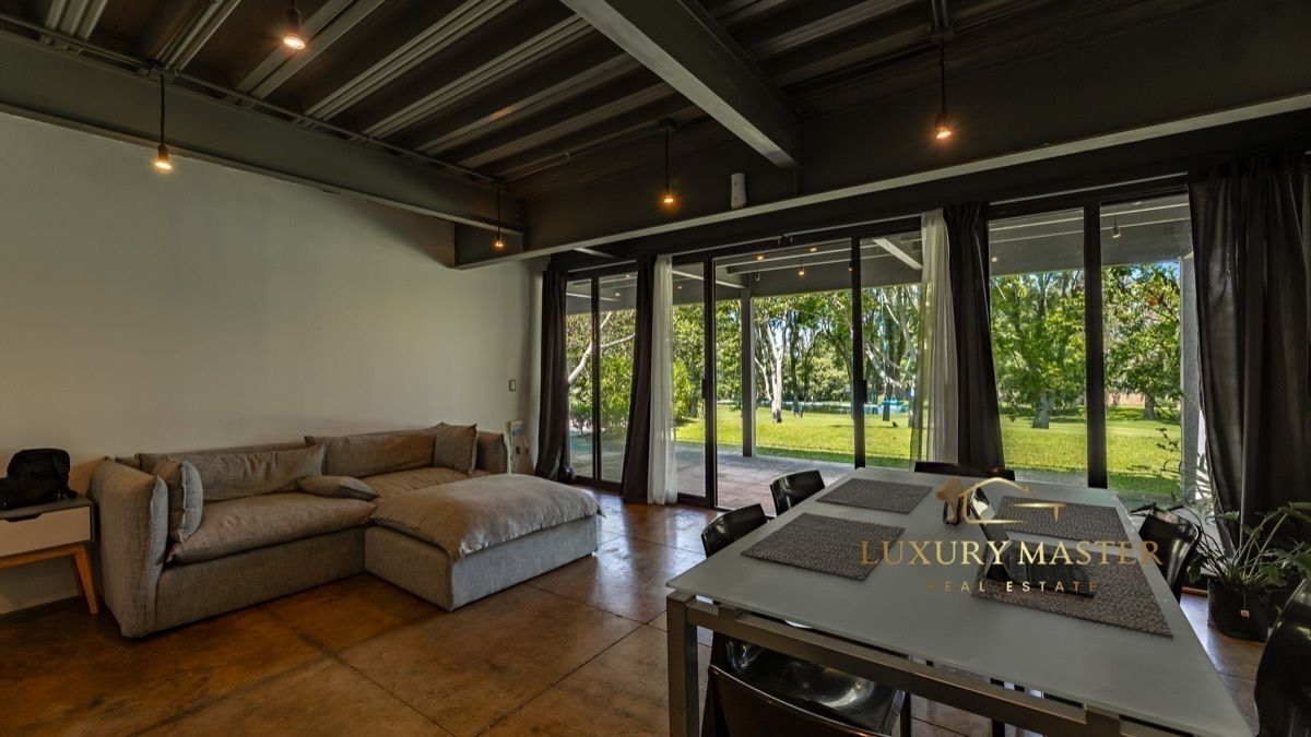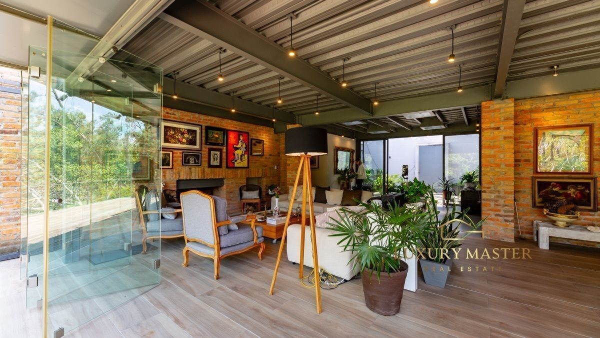 Iluminada prácticamente desde cualquier lugar de la casa ya que hacia el campo de golf solo hay ventanas y puertas de cristal para gozar el pase boscoso.