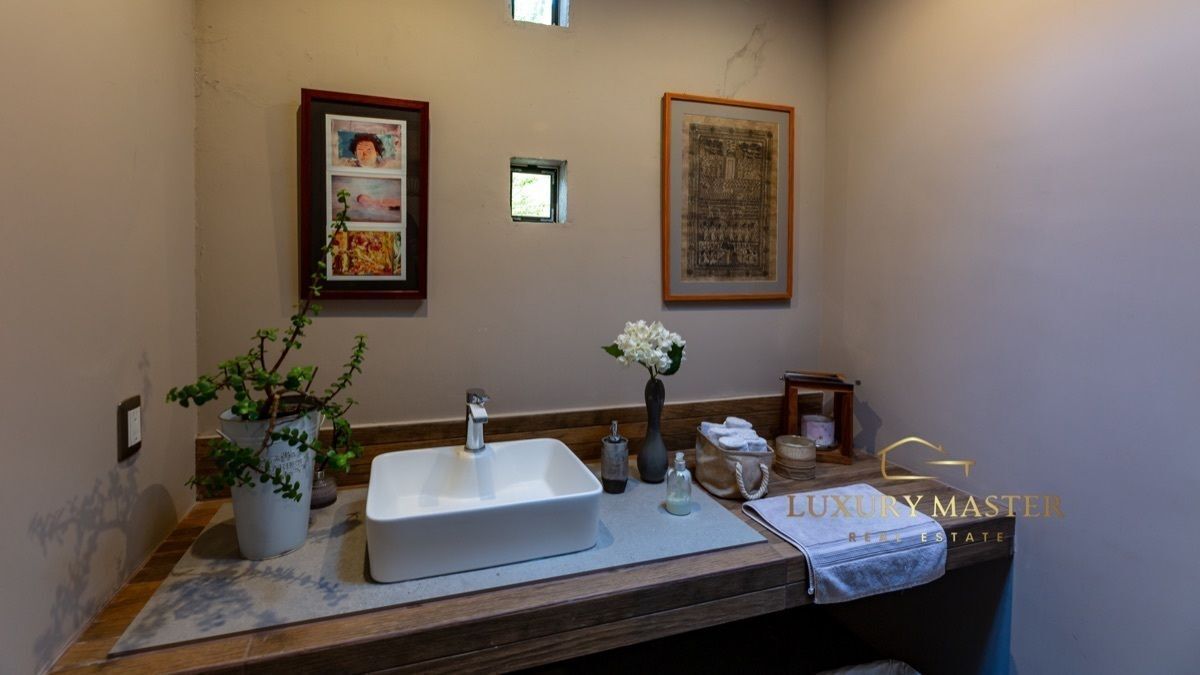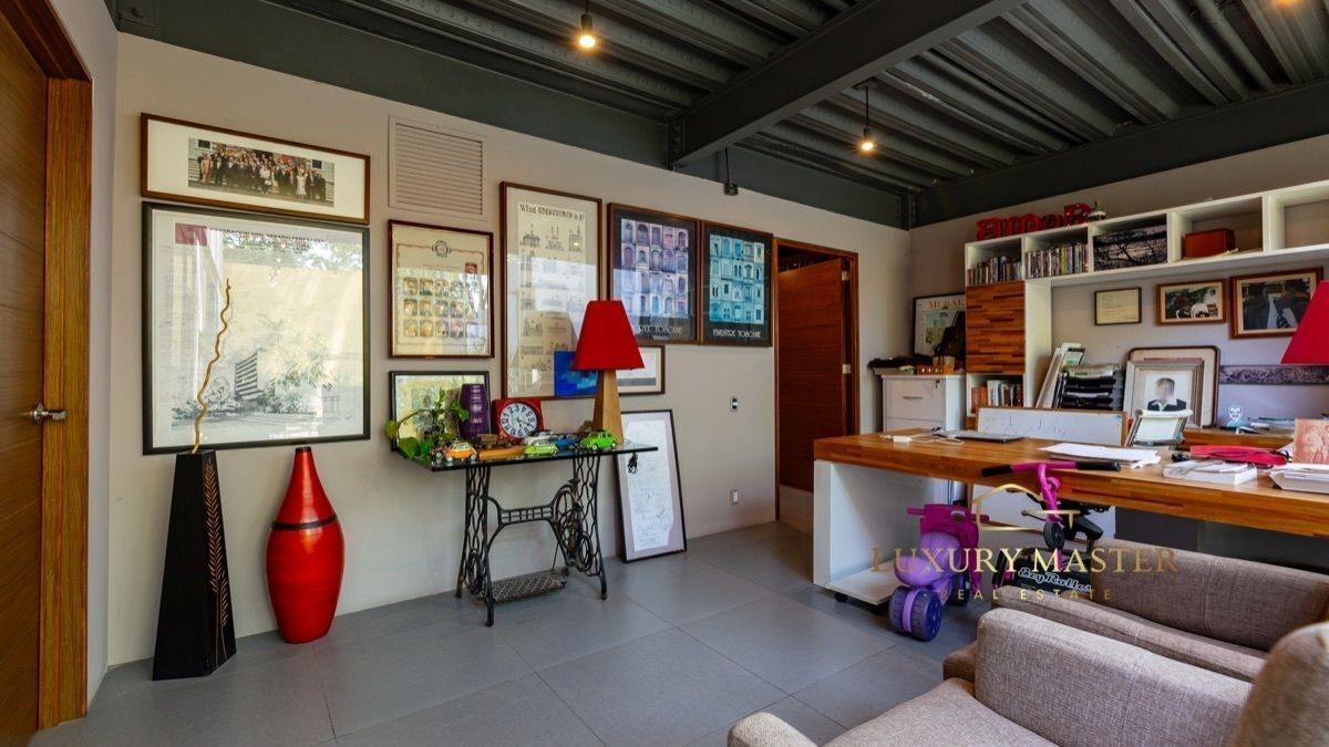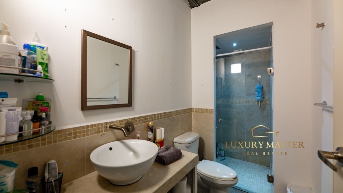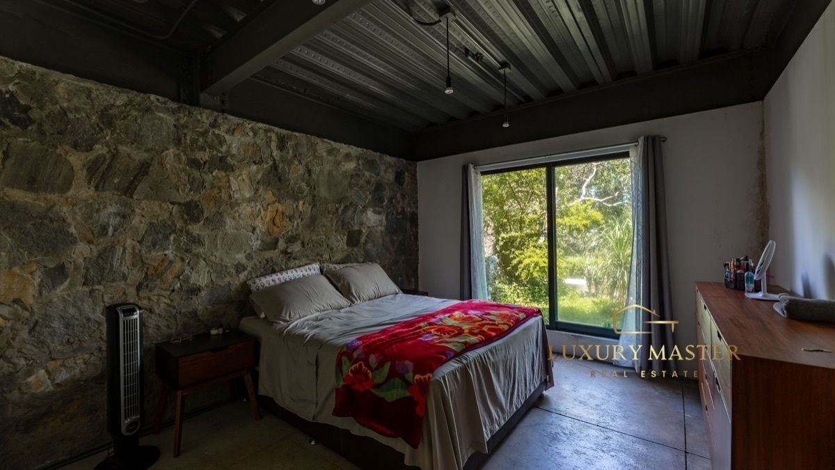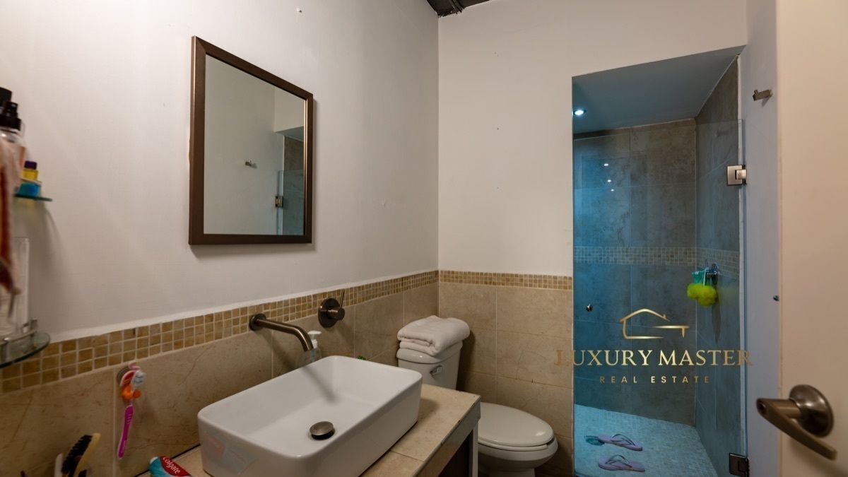3 Recámaras con baño completo cada una, estar de TV con cocina integral, por lo que se puede usar como departamento independiente.